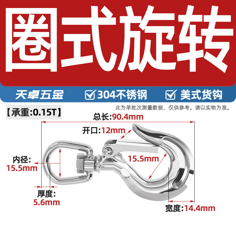 304 스테인레스 스틸 미국화물 후크 풀 훅 그랩 훅 방향 회전 링 훅 베어링 후크 리프팅 훅