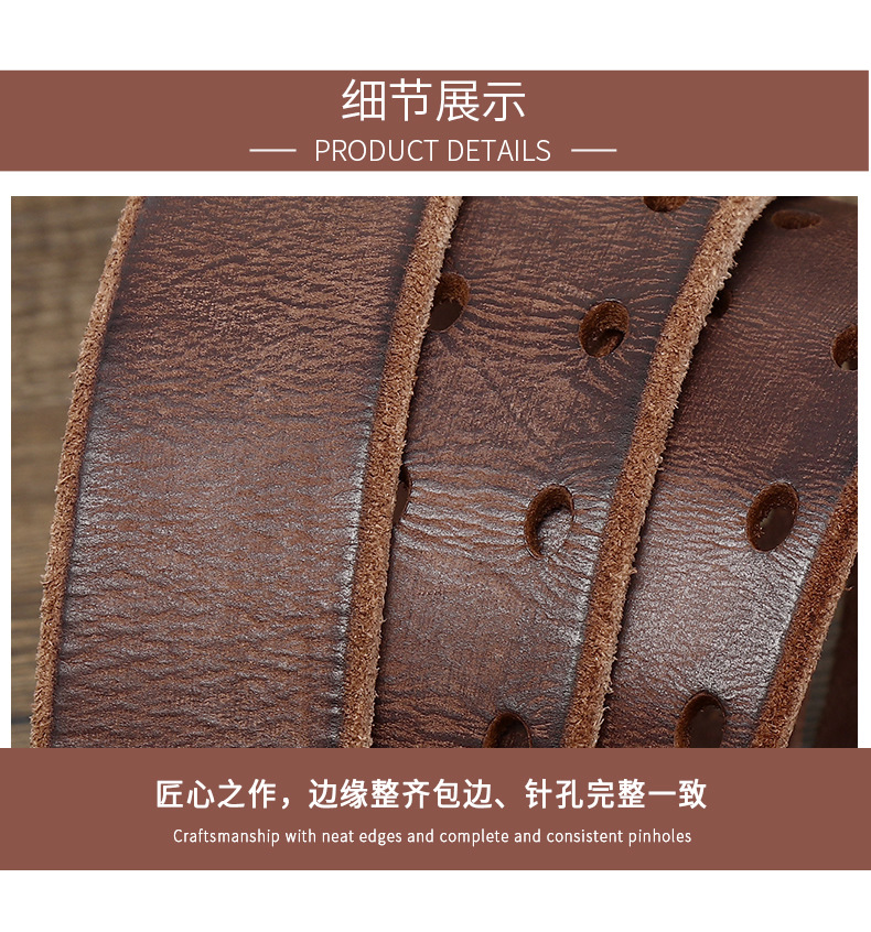 3.8CM 남성 벨트 정품 가죽 벨트 캐주얼 레트로 펀치 프리 핀 버클 글레이즈 카우 히드 게으른 벨트
