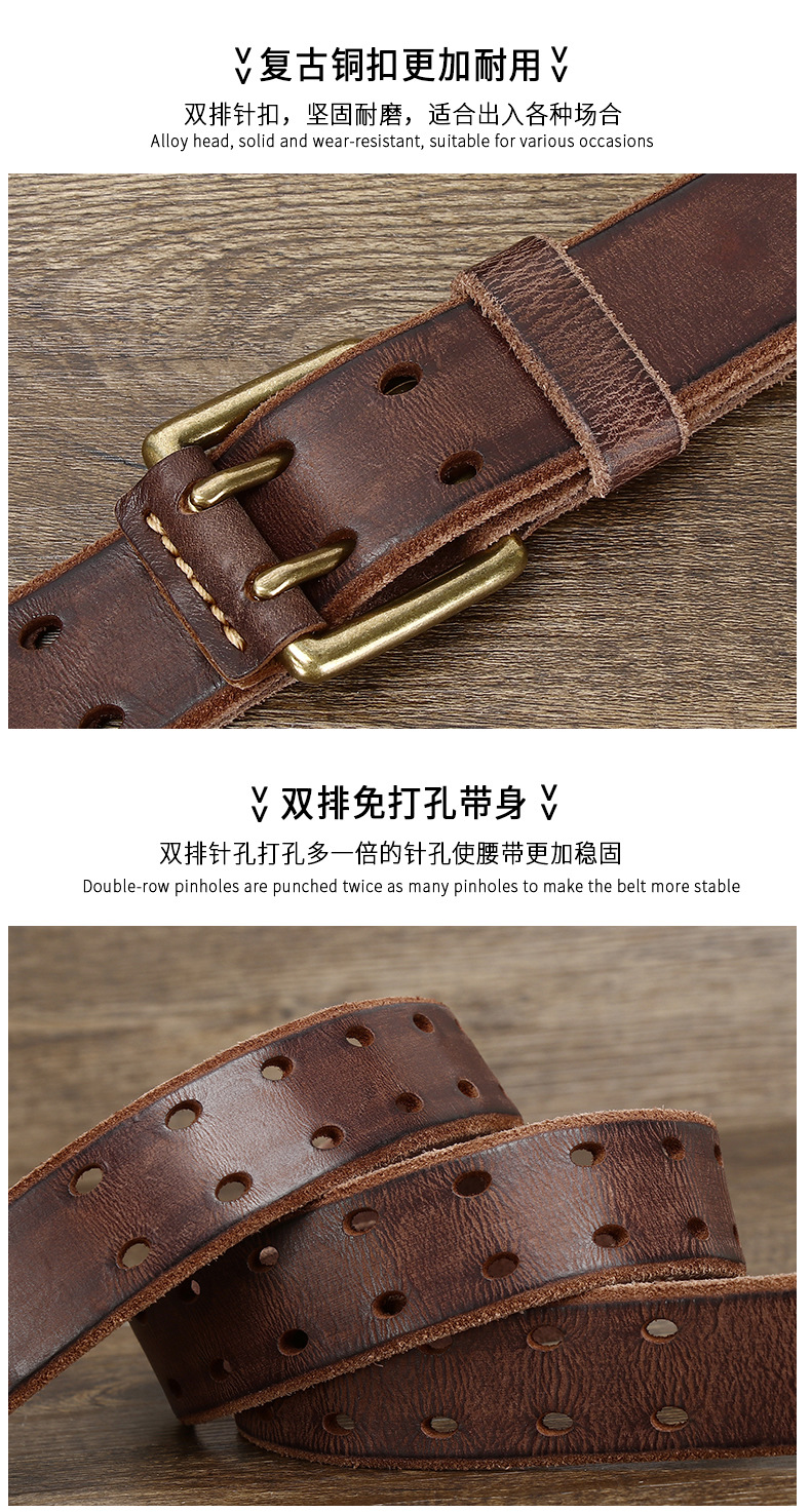 3.8CM 남성 벨트 정품 가죽 벨트 캐주얼 레트로 펀치 프리 핀 버클 글레이즈 카우 히드 게으른 벨트스토어 가기