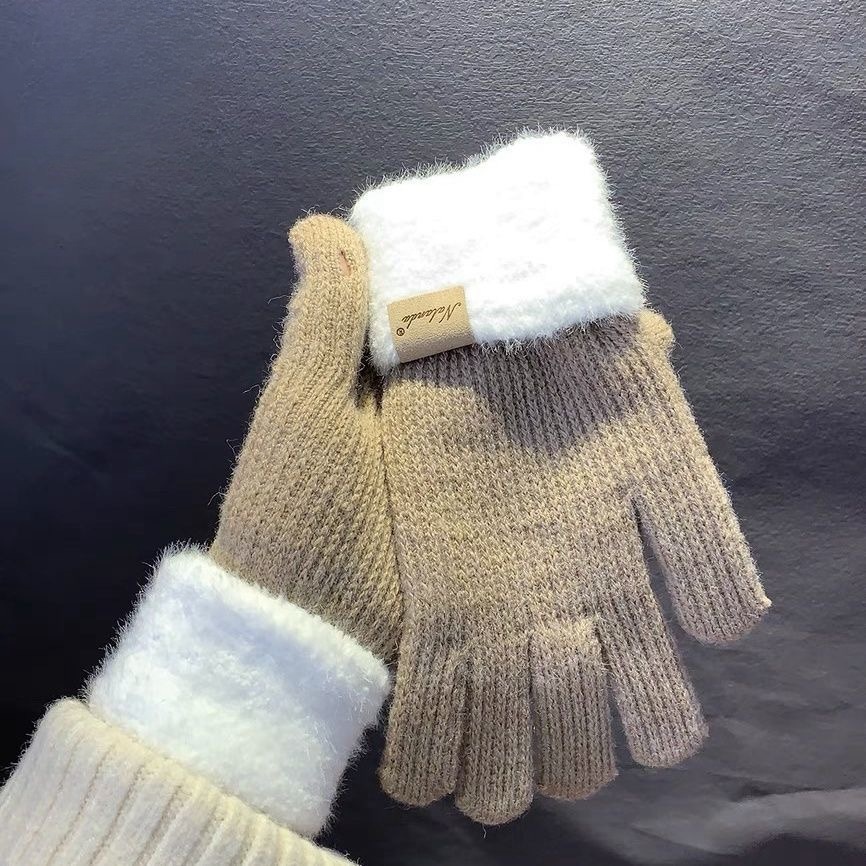따뜻한 양모 니트 장갑 여성용 겨울 이슬 2 손가락 터치 스크린 귀여운 두꺼운 따뜻한 가을과 겨울 승마 감기 보호