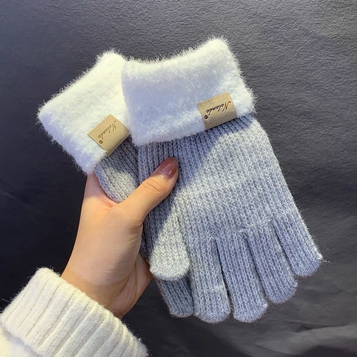 따뜻한 양모 니트 장갑 여성용 겨울 이슬 2 손가락 터치 스크린 귀여운 두꺼운 따뜻한 가을과 겨울 승마 감기 보호스토어 가기