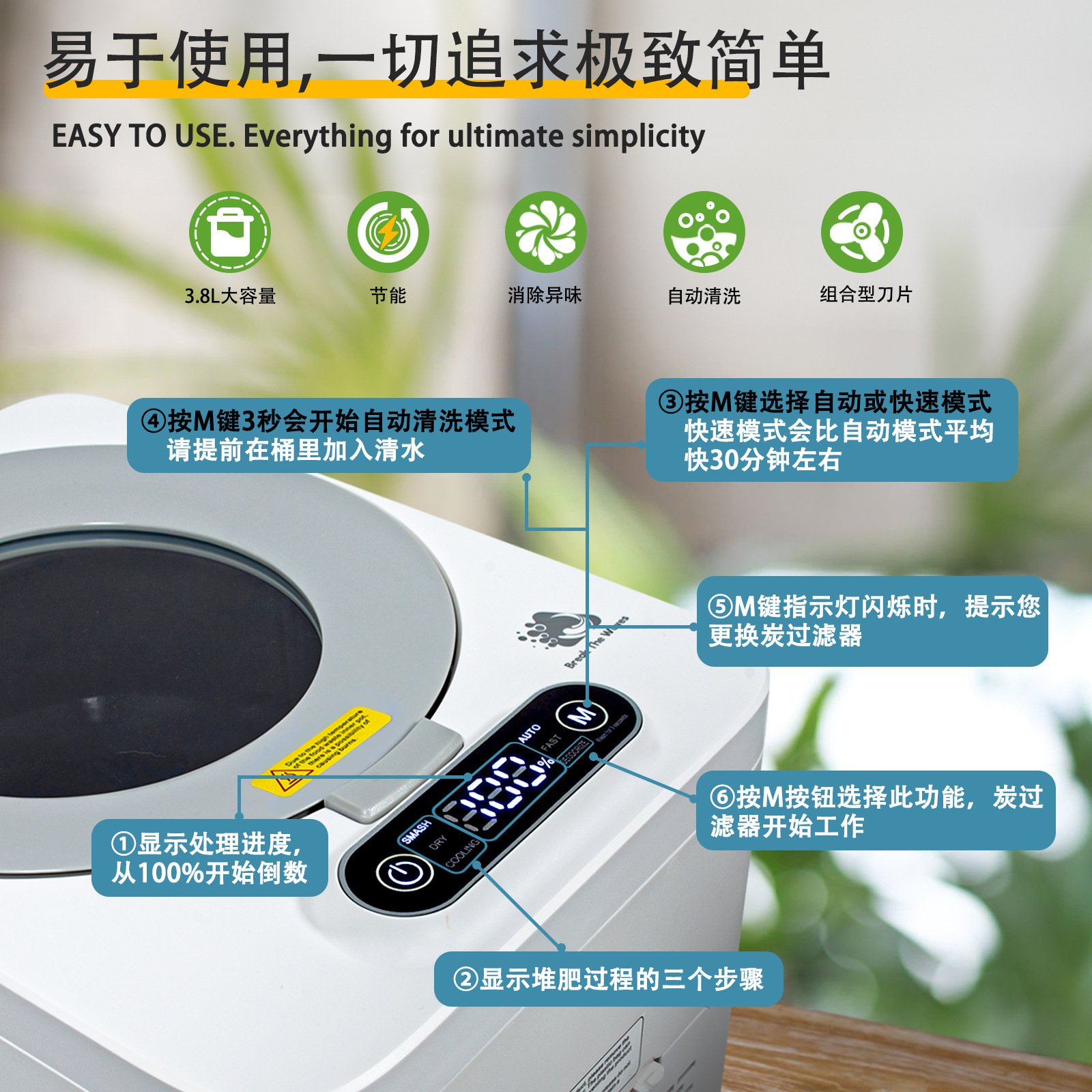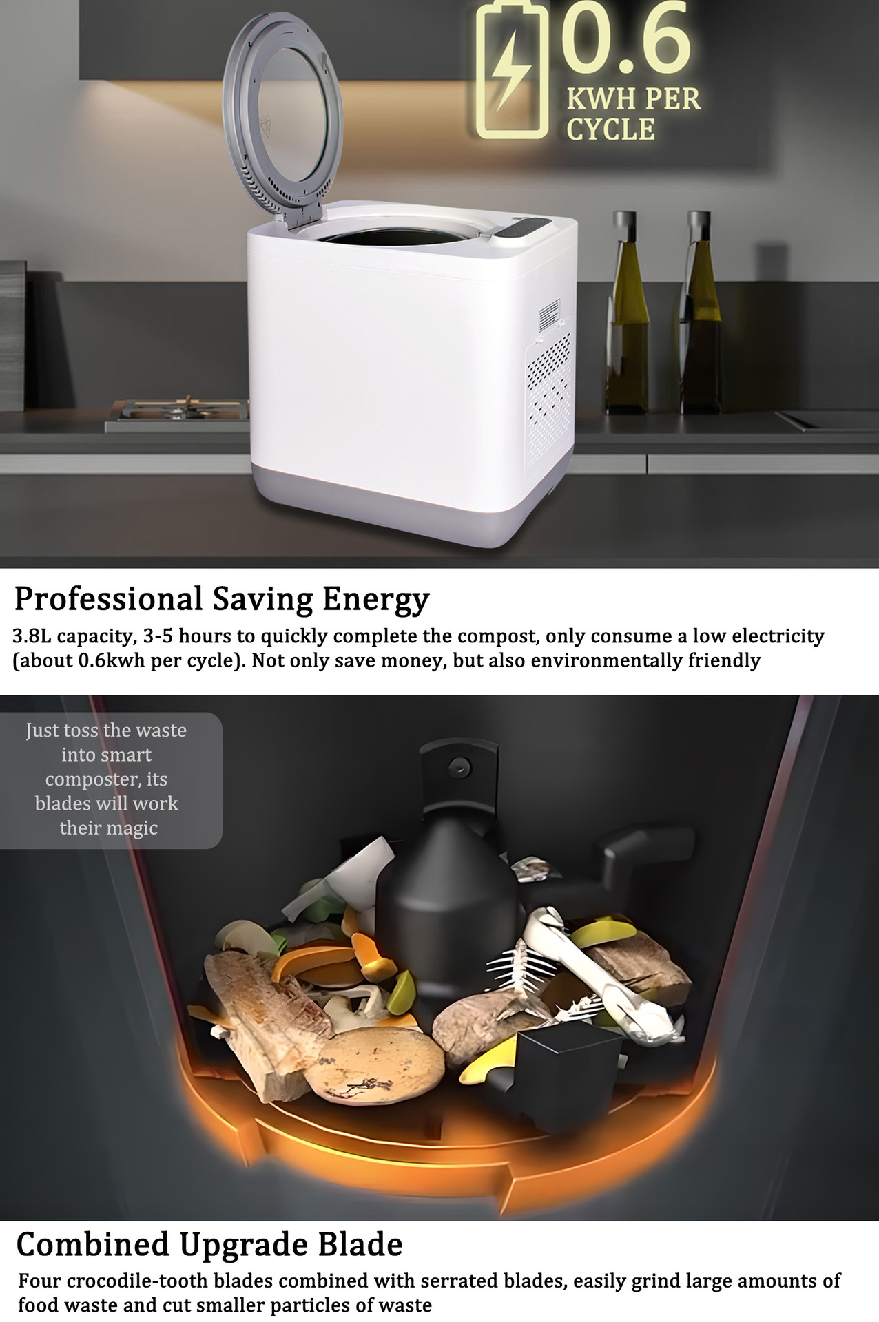 가정용 친환경 주방 음식물 쓰레기 처리기 빠른 건조 및 분쇄 퇴비화 기계 3.8L 대용량