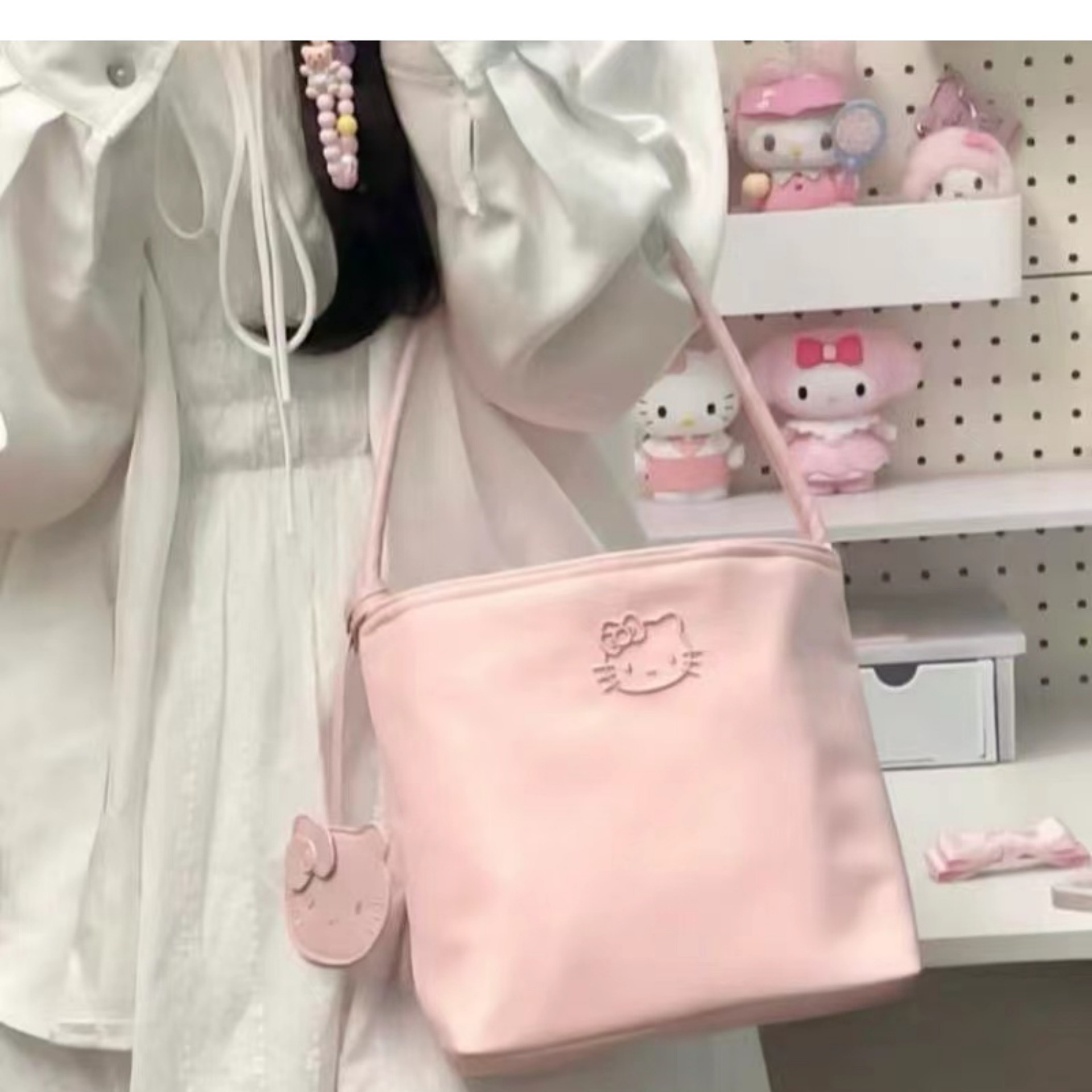 Hellokitty 가방 여성 대학생 학교 가방 어깨 가방 2024 여성을위한 새로운 버킷 가방 절묘한 언더암 가방스토어 가기