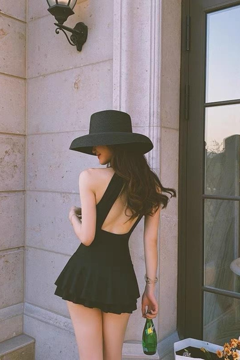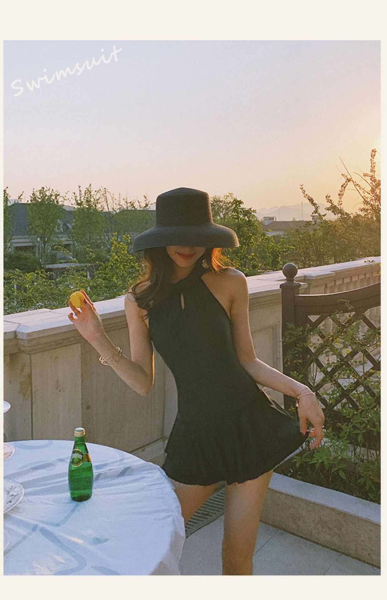 2024 새로운 원피스 수영복 여성 섹시한 아름다운 뒷면 한국식 하이 엔드 느낌 작은 가슴 약간 뚱뚱한 온천 수영 도매스토어 가기