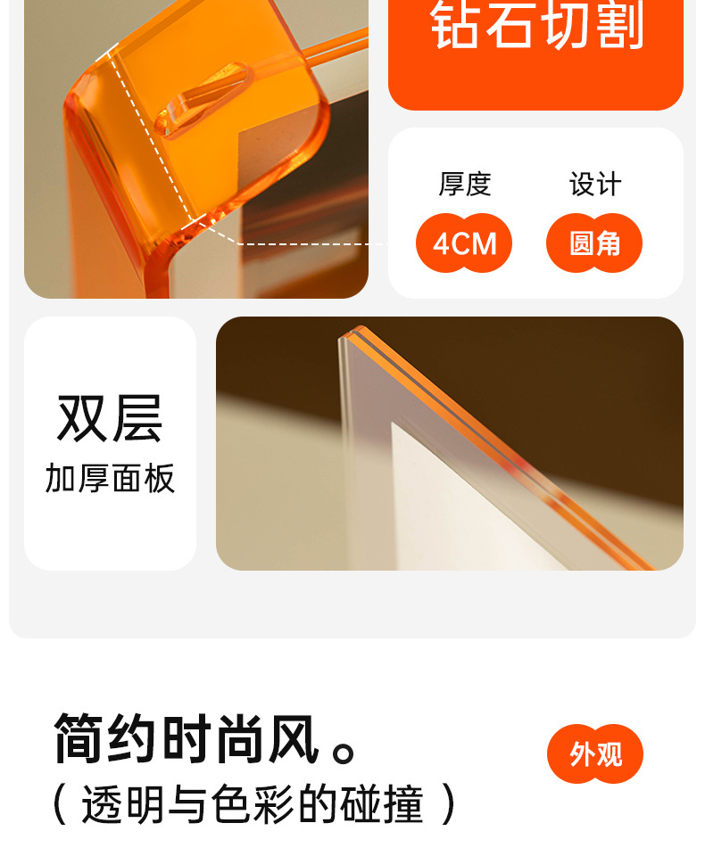높은 수준의 창조적 인 다채로운 아크릴 투명 크리스탈 사진 프레임 빈 프레임 사진 6 인치 7 인치 8 인치 그림