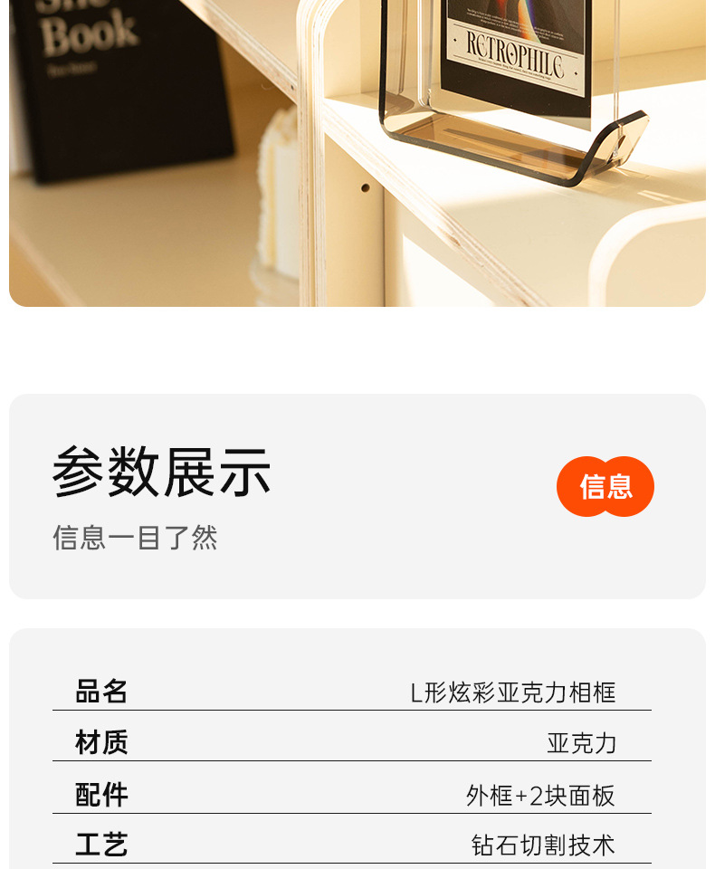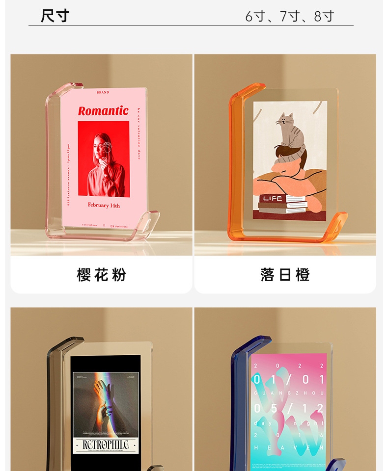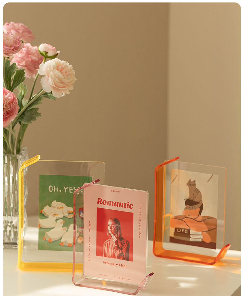 높은 수준의 창조적 인 다채로운 아크릴 투명 크리스탈 사진 프레임 빈 프레임 사진 6 인치 7 인치 8 인치 그림스토어 가기