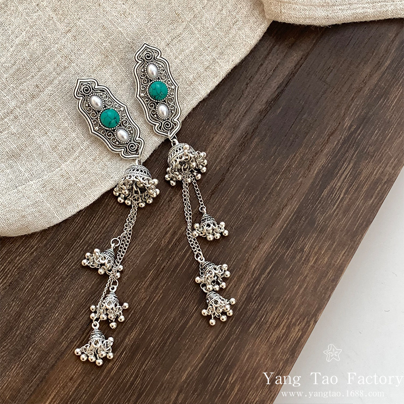 오리지널 핸드메이드 민족풍 은색 태슬 헤어 액세서리, 헤어핀, 사이드 클립, 앞머리 클립, 초원 몽골 여행스토어 가기