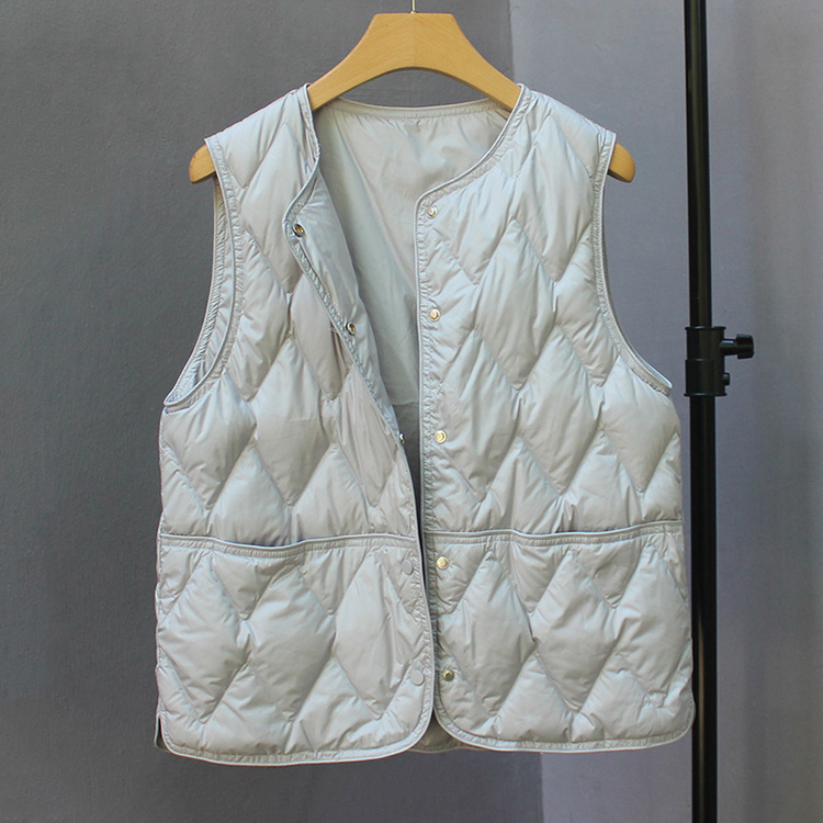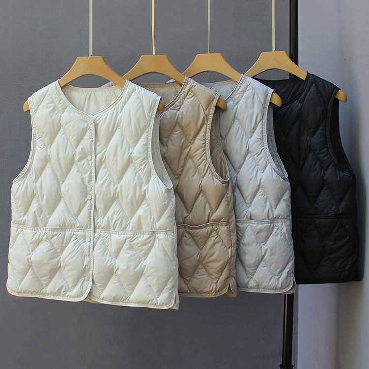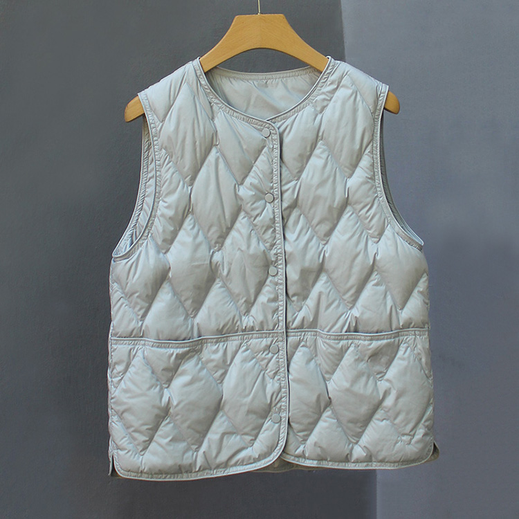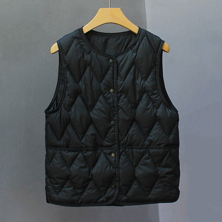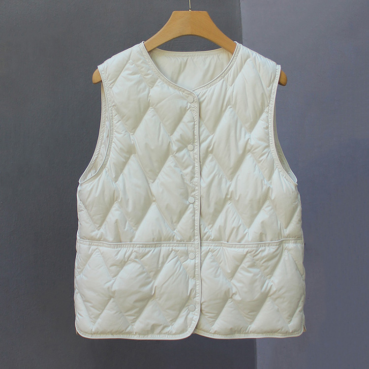 90 흰 오리 다운 라이트 다운 조끼 여성 쇼트 2024 가을과 겨울 새로운 다운 조끼 라운드 넥 코트 트렌디