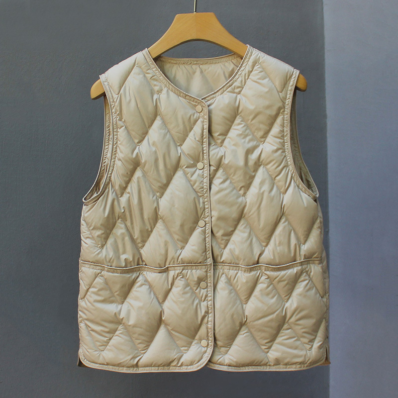 90 흰 오리 다운 라이트 다운 조끼 여성 쇼트 2024 가을과 겨울 새로운 다운 조끼 라운드 넥 코트 트렌디스토어 가기
