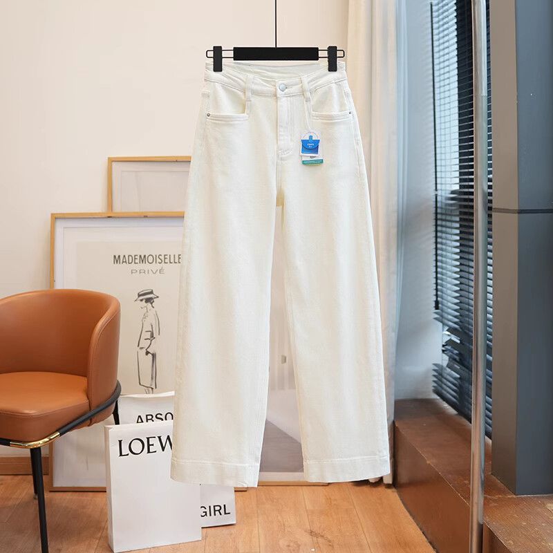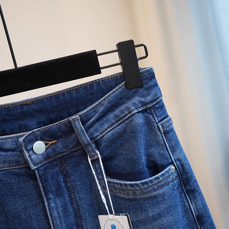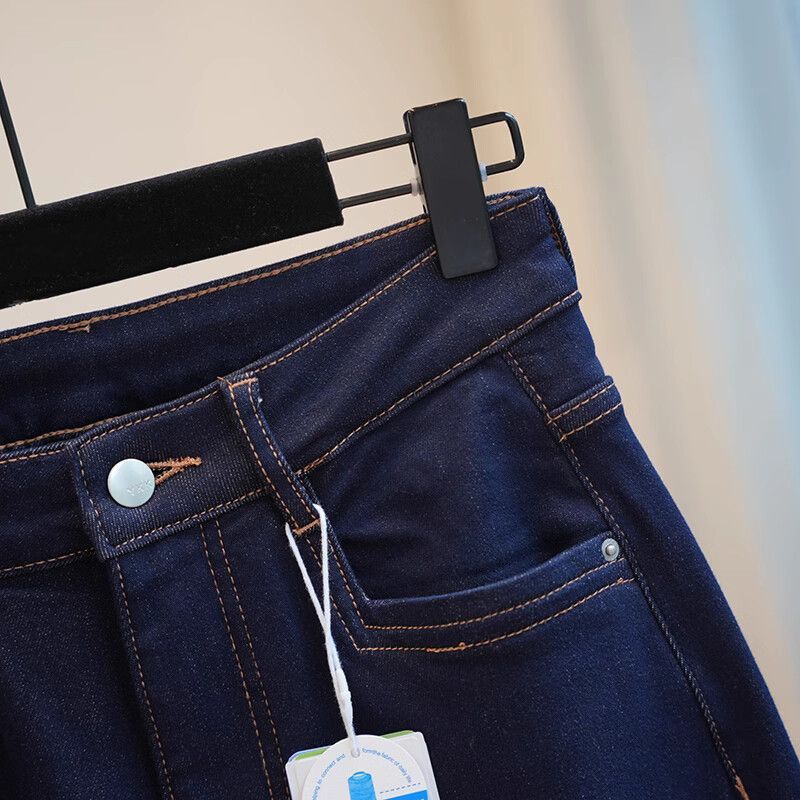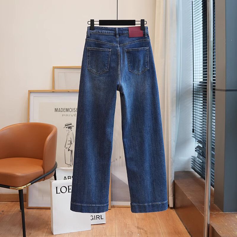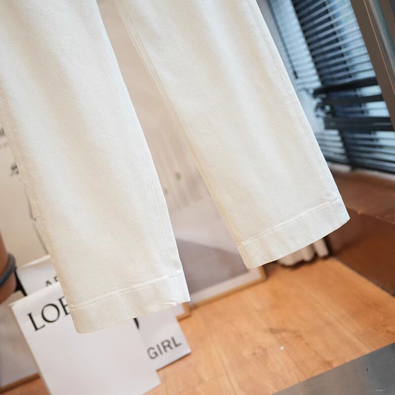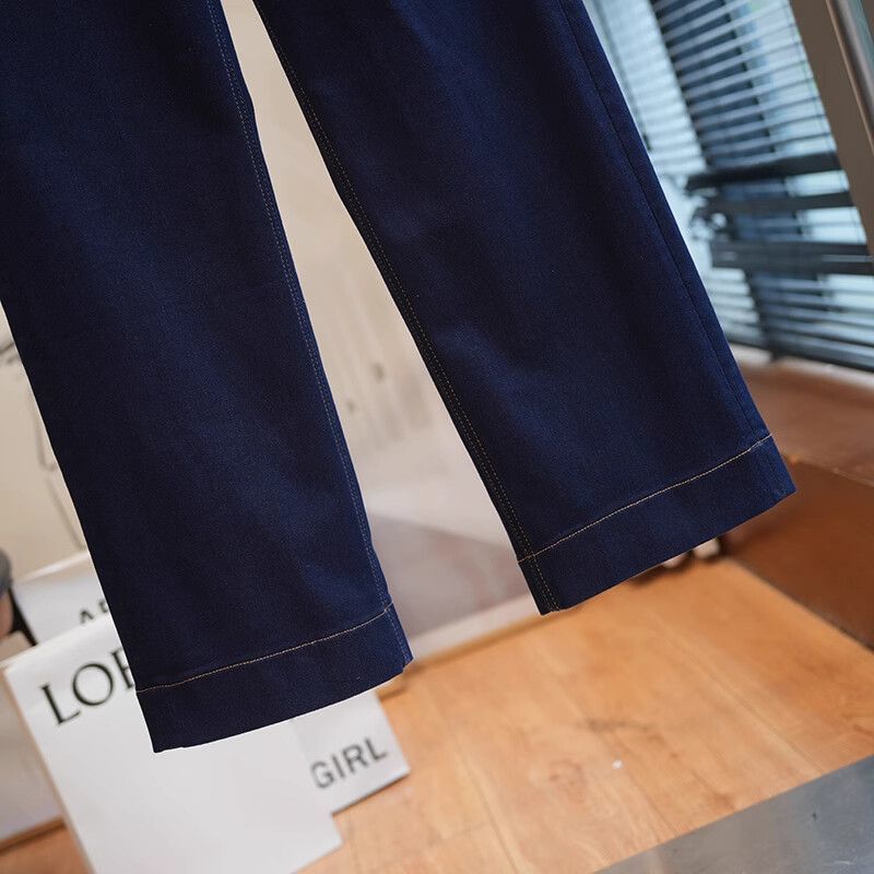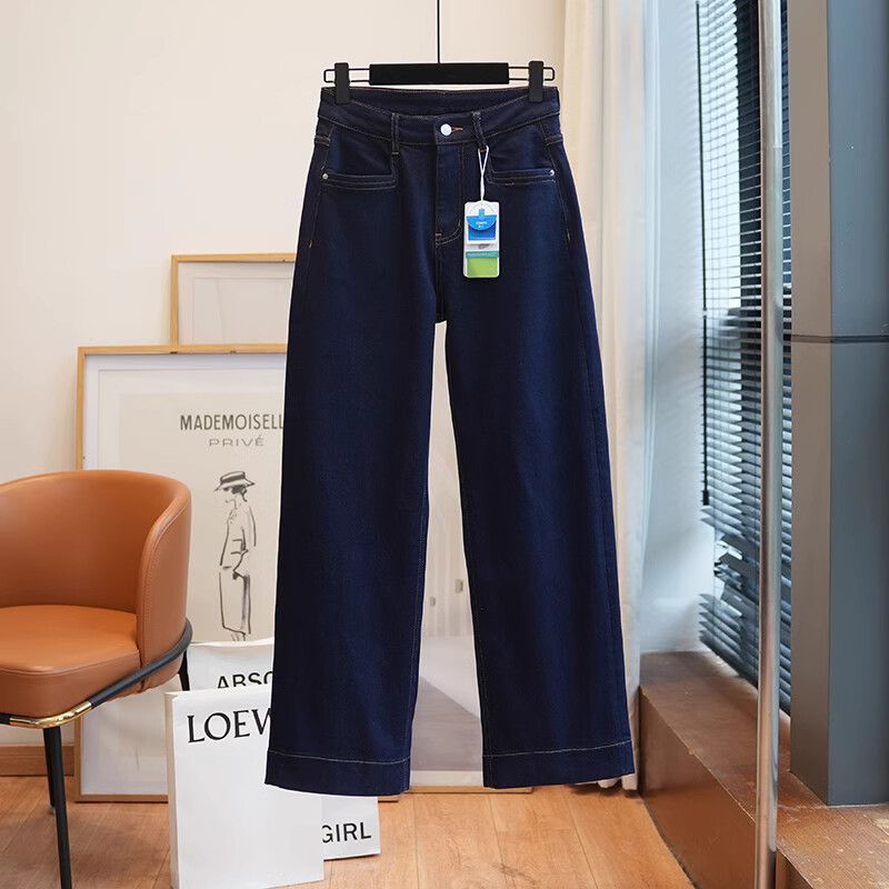 폴 스텝 폴 품질 슬림 다리 스트레이트 코튼 탄성 느슨한 넓은 다리 높은 허리 양털 캐주얼 데님 나니/긴 바지 여성스토어 가기