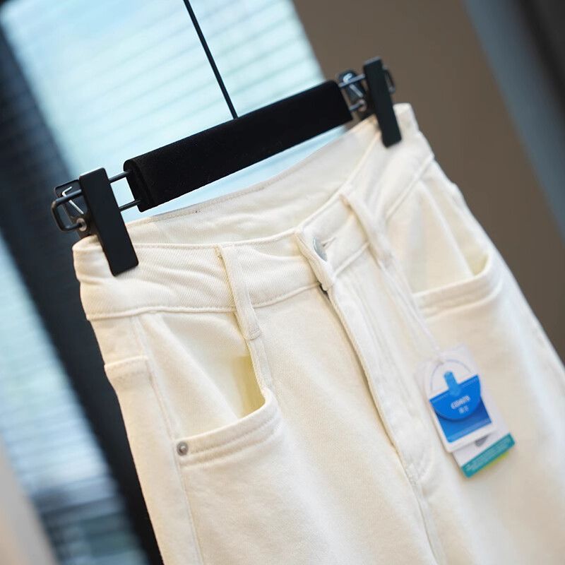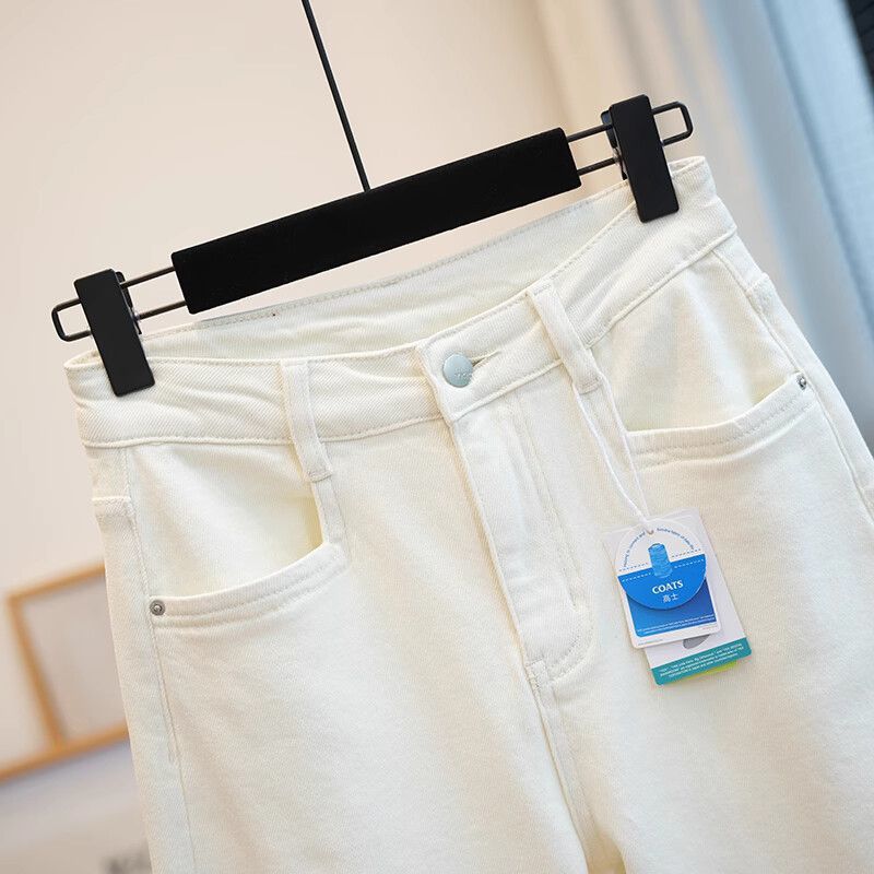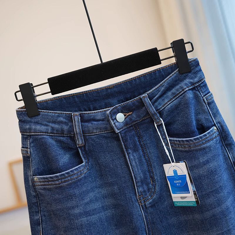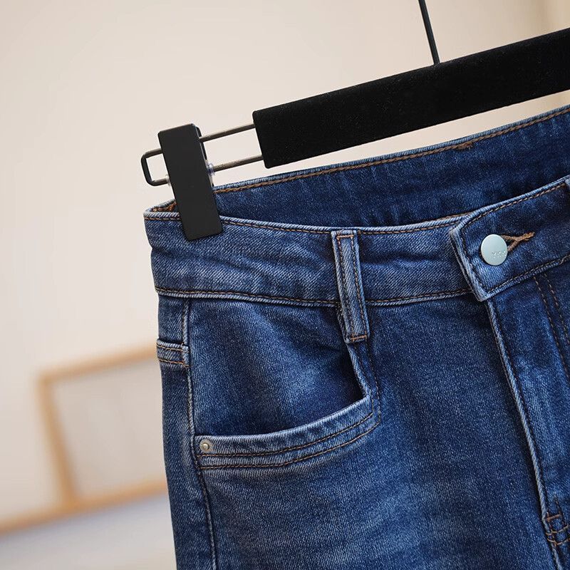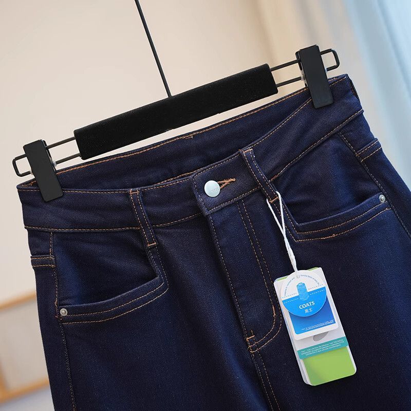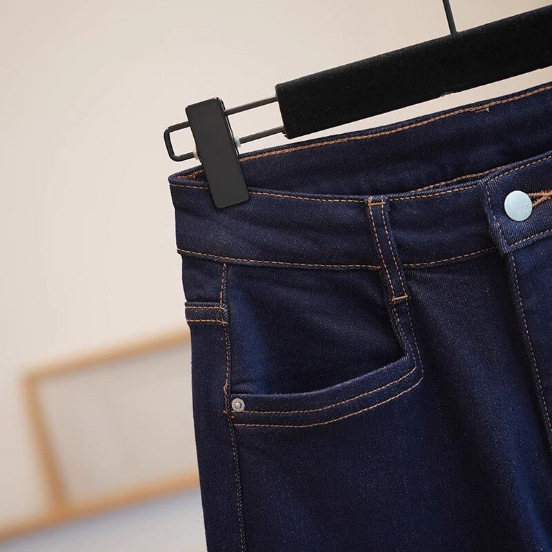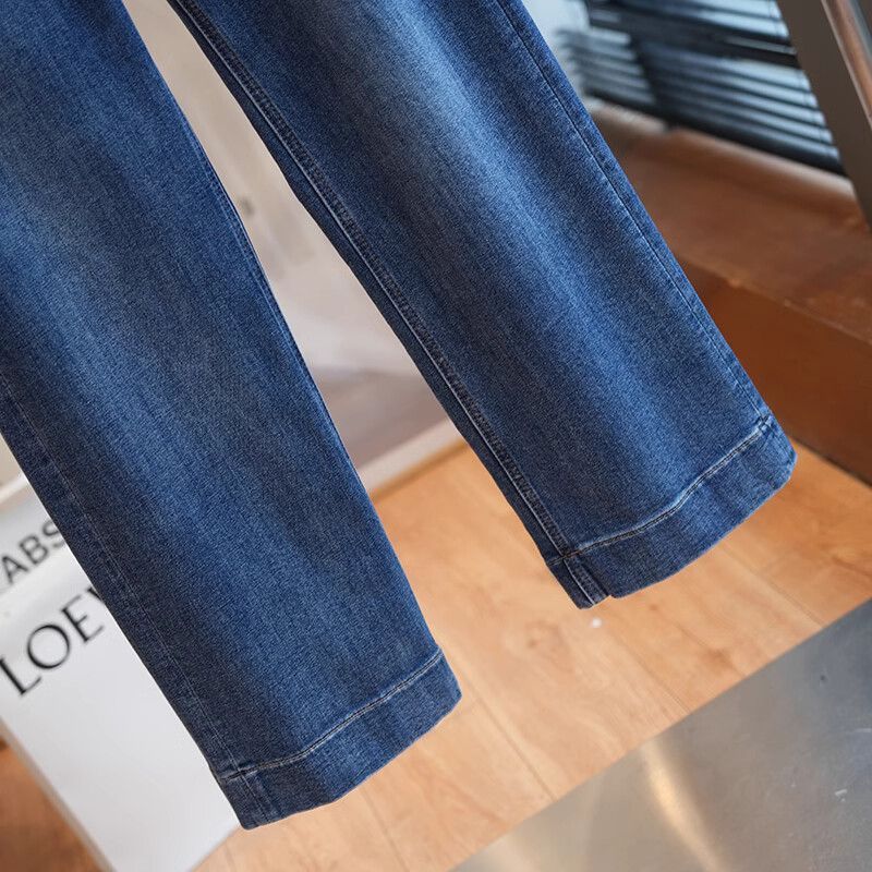 폴 스텝 폴 품질 슬림 다리 스트레이트 코튼 탄성 느슨한 넓은 다리 높은 허리 양털 캐주얼 데님 나니/긴 바지 여성스토어 가기