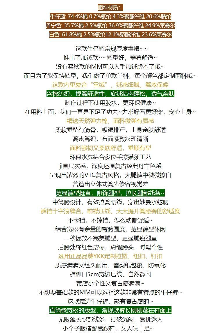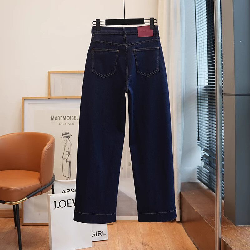 폴 스텝 폴 품질 슬림 다리 스트레이트 코튼 탄성 느슨한 넓은 다리 높은 허리 양털 캐주얼 데님 나니/긴 바지 여성