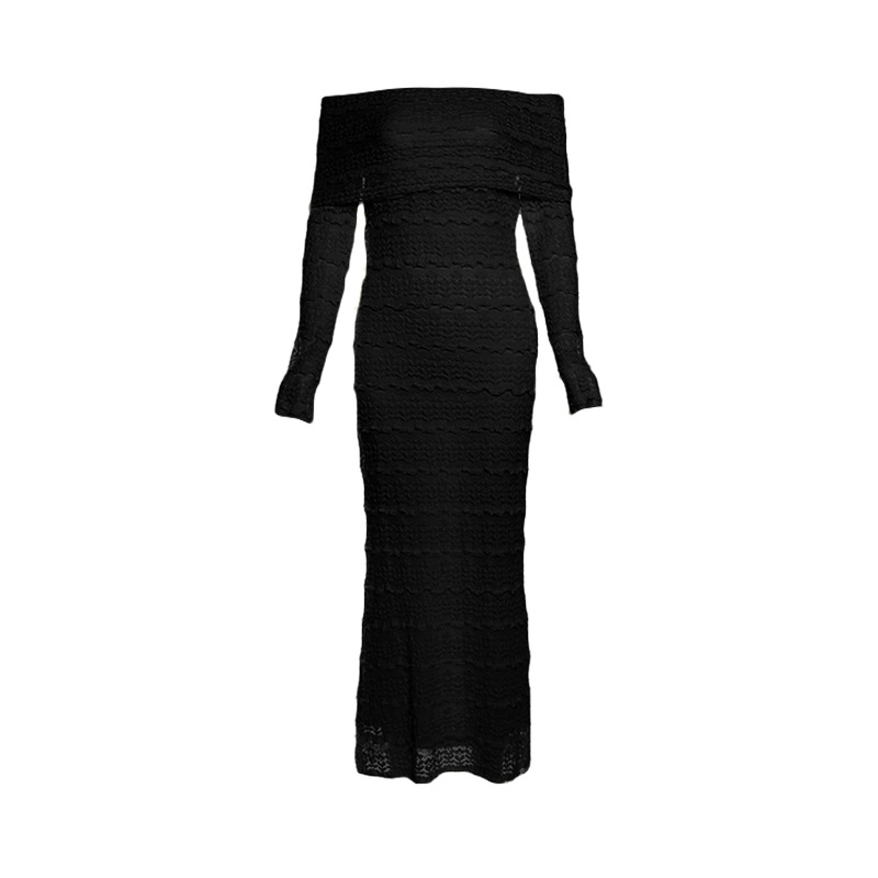 유럽과 미국 스타일 2024 가을 아마존 새로운 패션 우아한 사교계 스타일 오프 숄더 레이스 원피스 여성