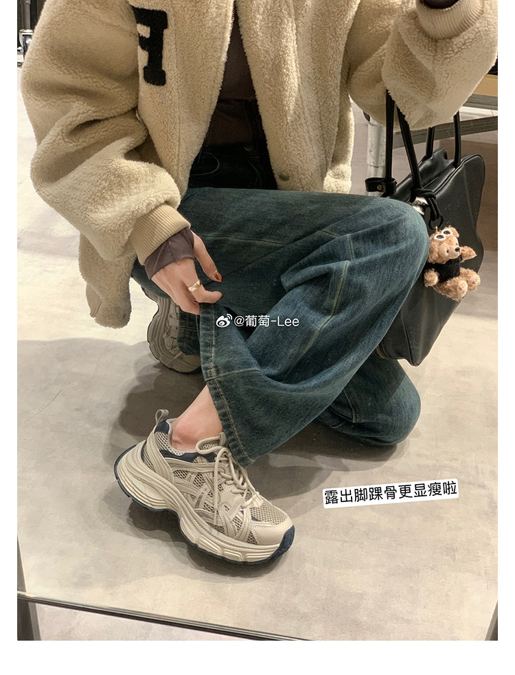 포도 엄마 studiolee 여름 유행 프론트 레이스 업 컬러 블록 메쉬 스포츠 스타일 플랫폼 캐주얼 토레 신발스토어 가기