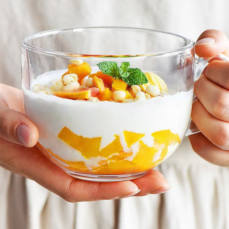 Daifa 대용량 유리 컵 오트밀 조식 컵 가구 여성 밀크 컵 뚜껑 스푼 그릇 워터 컵 카페