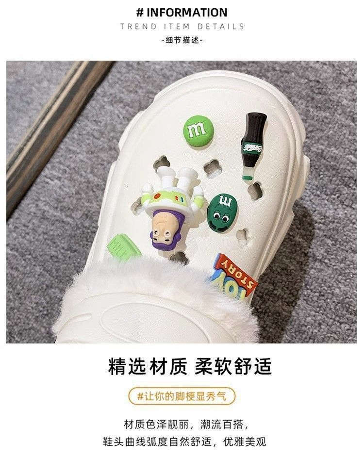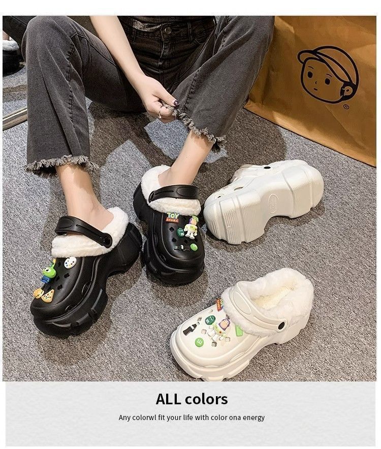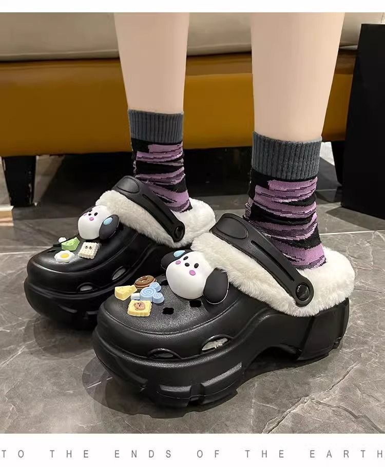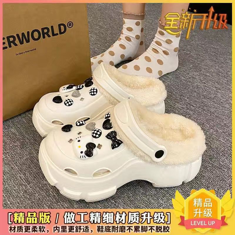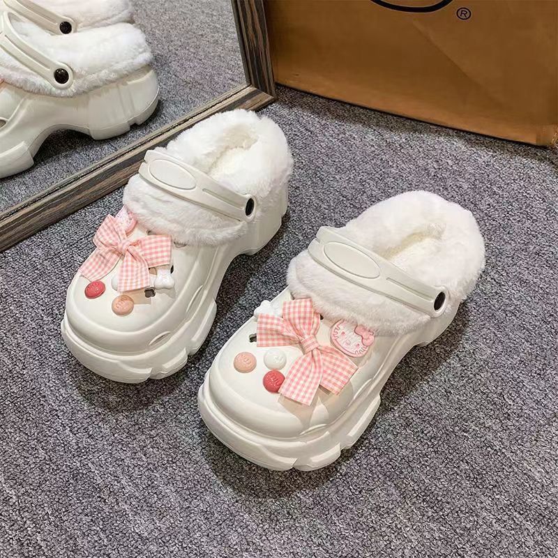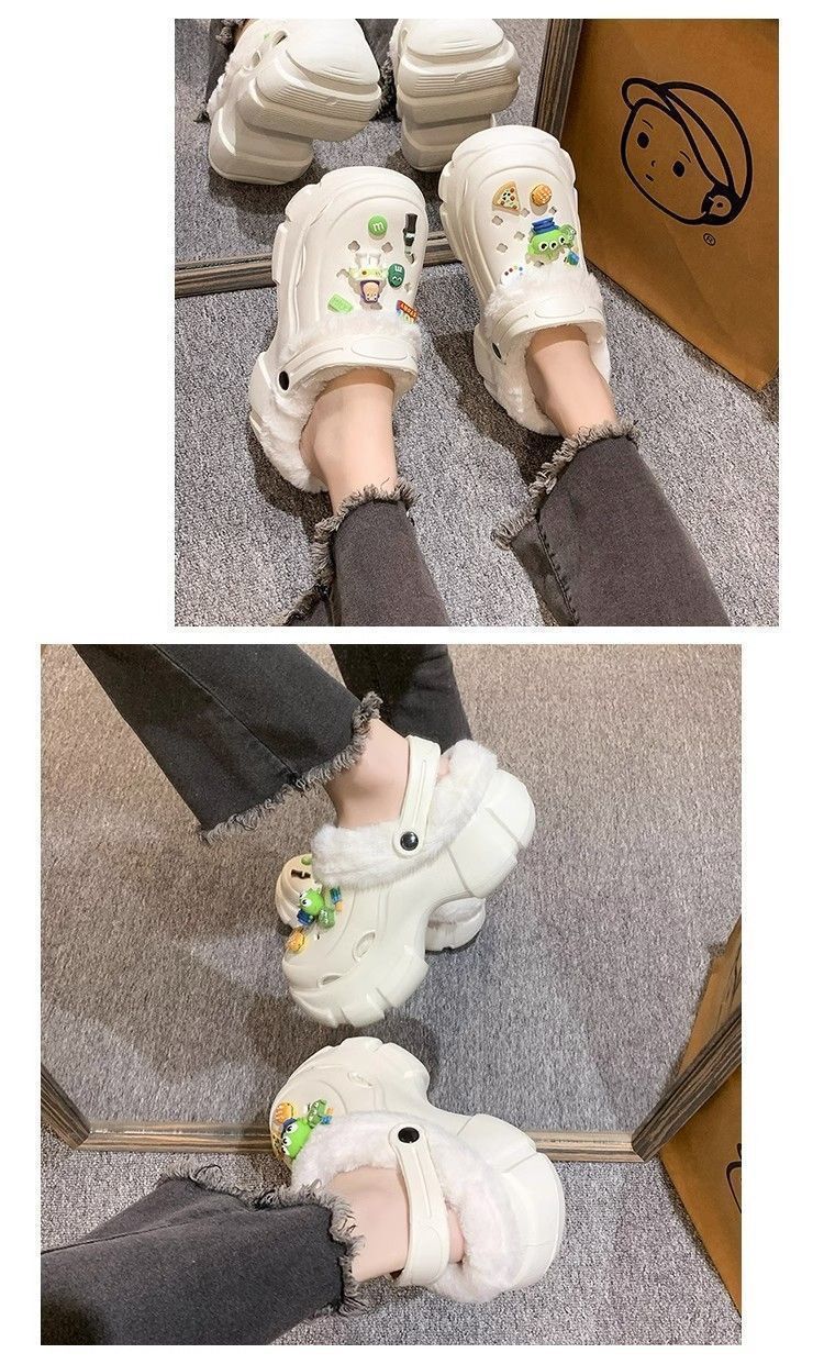 동굴 신발 겨울 기모 분리 가능한 여성 가을과 겨울 소녀 하이힐 귀여운 학생 미끄럼 면화 슬리퍼 겨울 기모스토어 가기