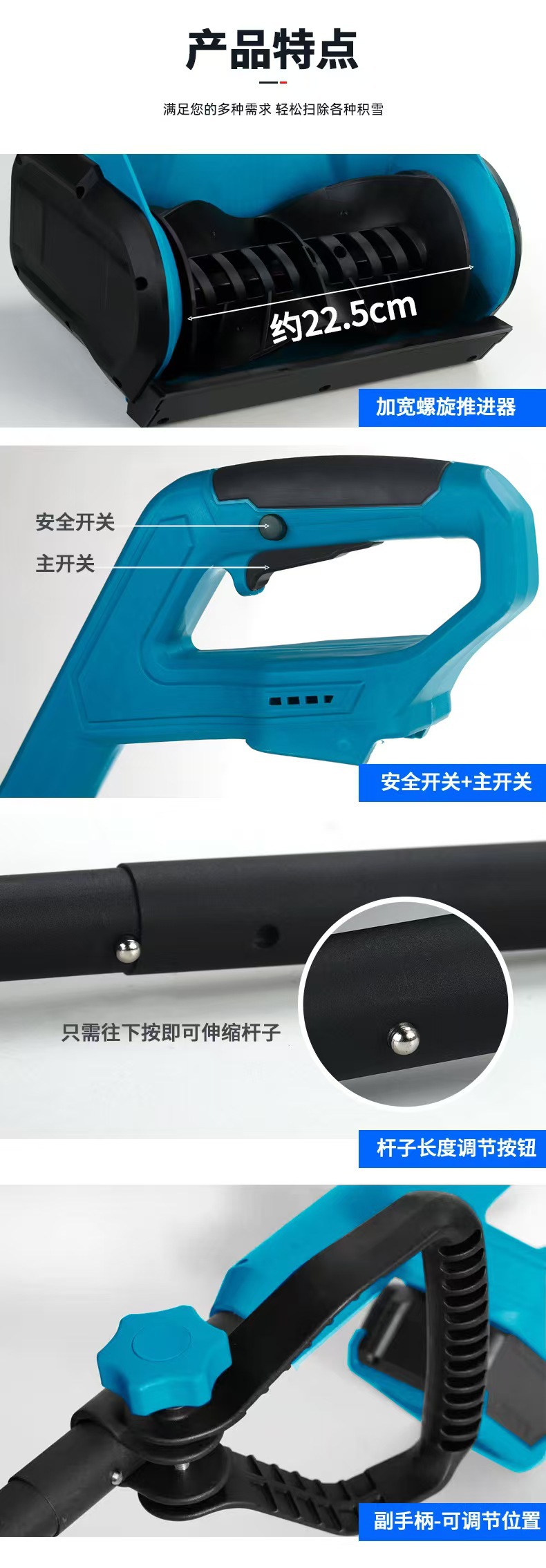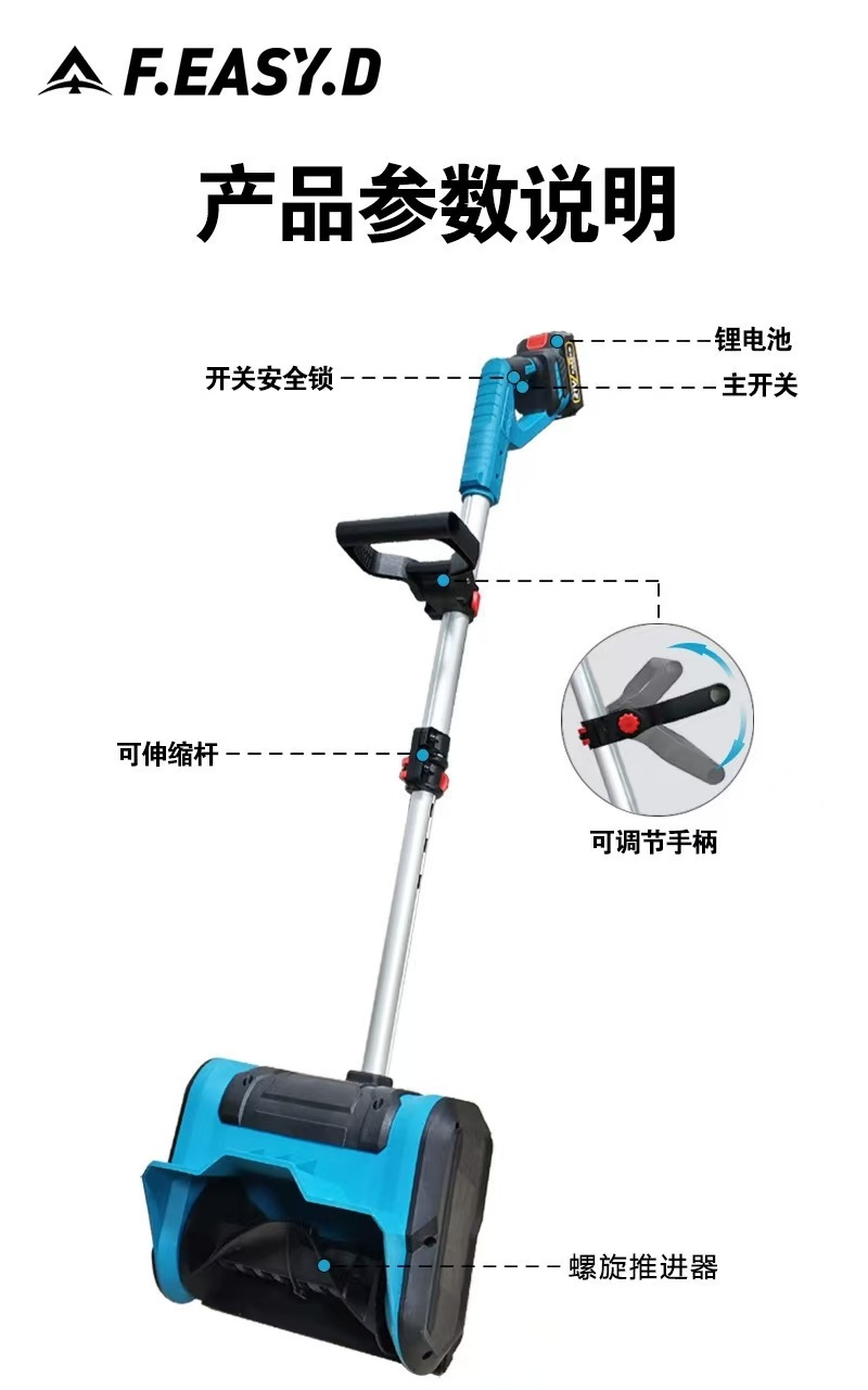 전기 손으로 밀어 눈 쟁기 리튬 배터리 스노우 쟁기 가정용 눈 청소 아티팩트 접이식 제설기 공장 도매