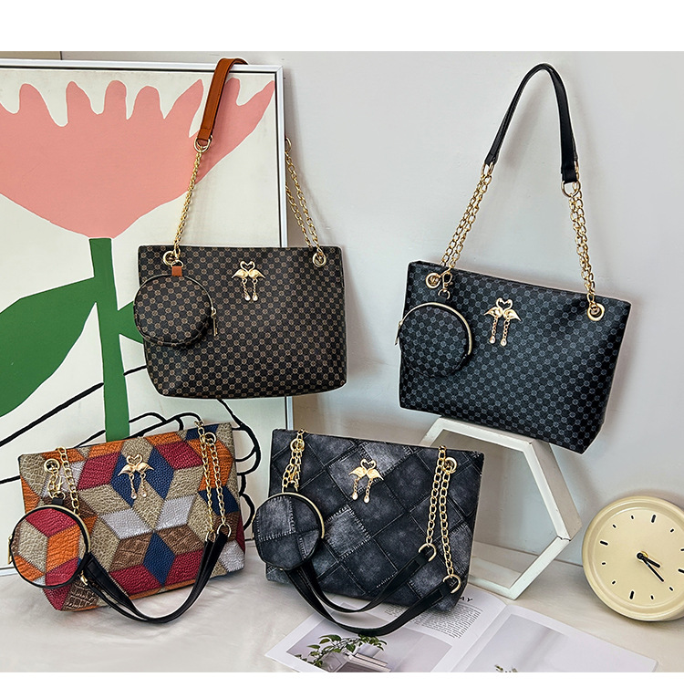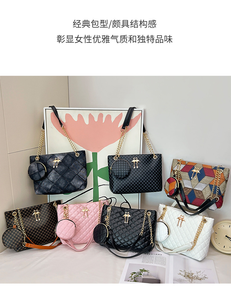 대용량 미라 가방 2024새로운 가방 국경 도매 여성 가방 투피스 숄더백 프린트 마름모 가방