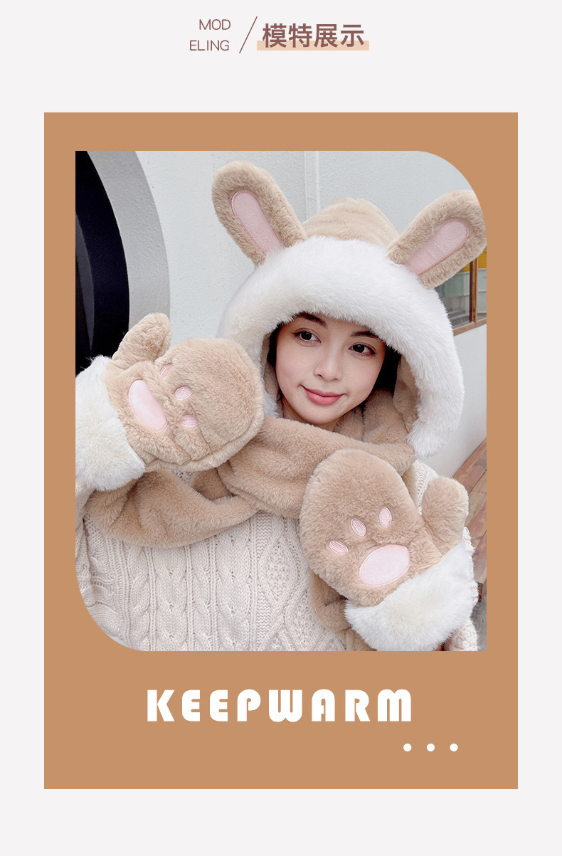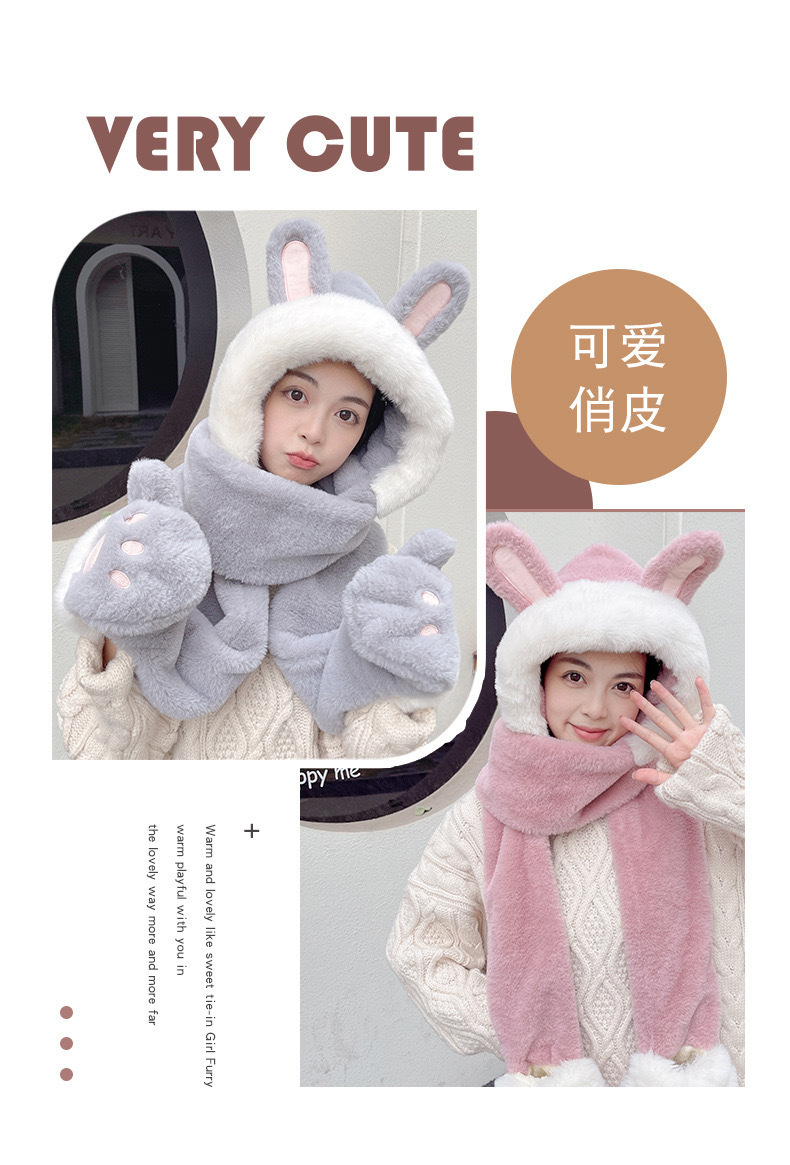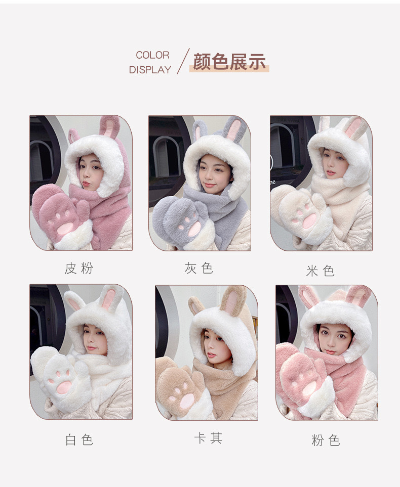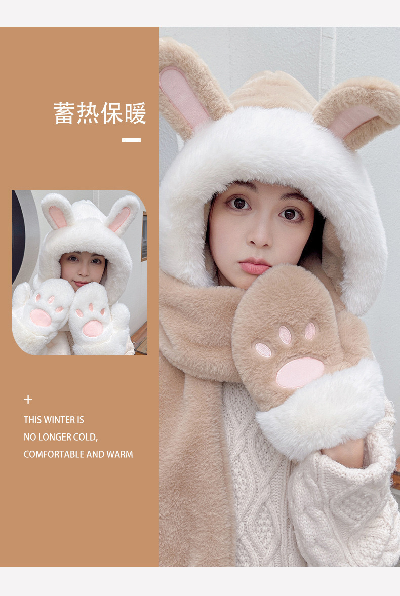 가을과 겨울 새로운 귀여운 봉제 토끼 귀 고양이 발톱 모자 스카프 3 종 세트 여성 따뜻한 방한 귀 보호 사이클링스토어 가기