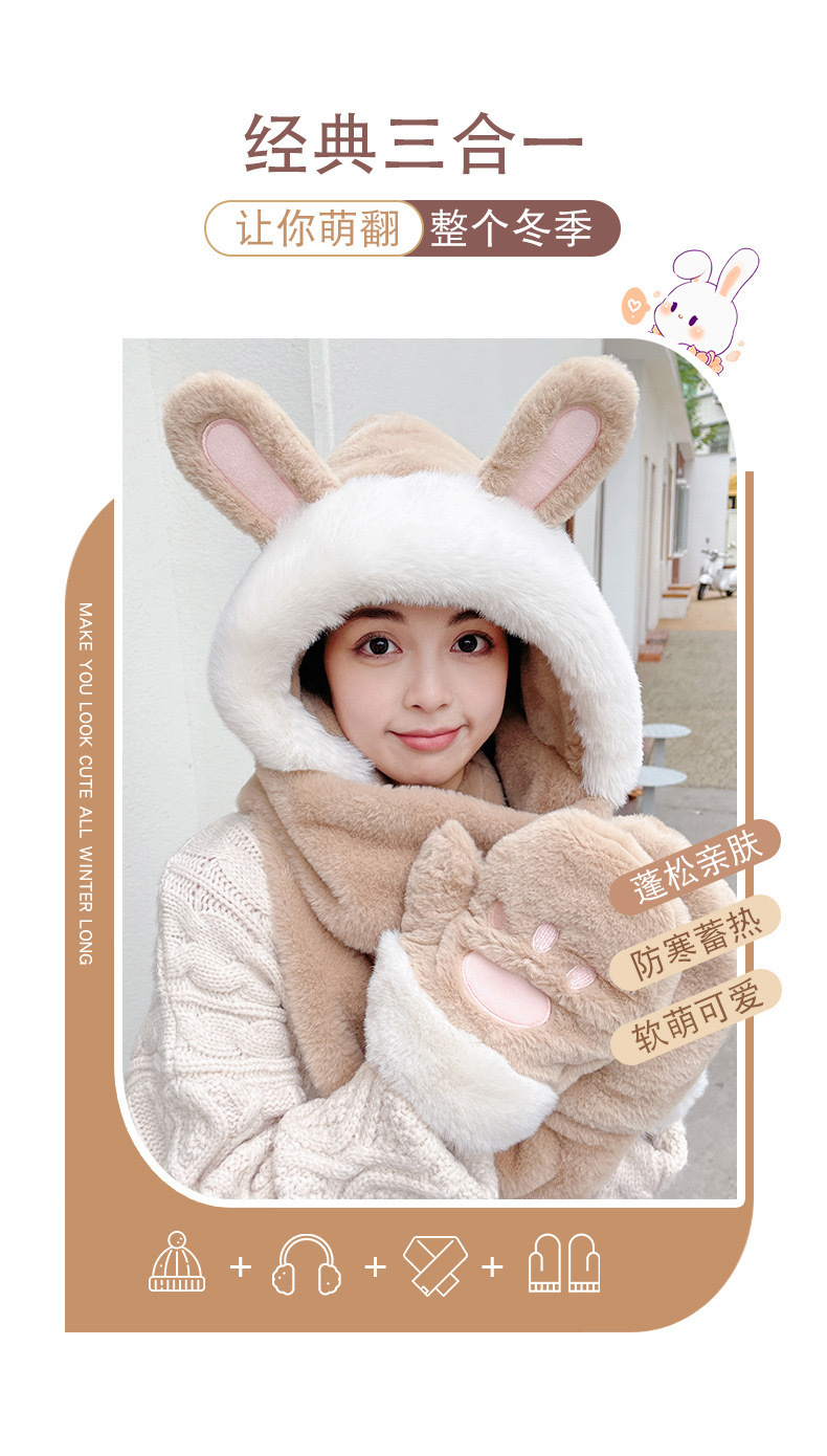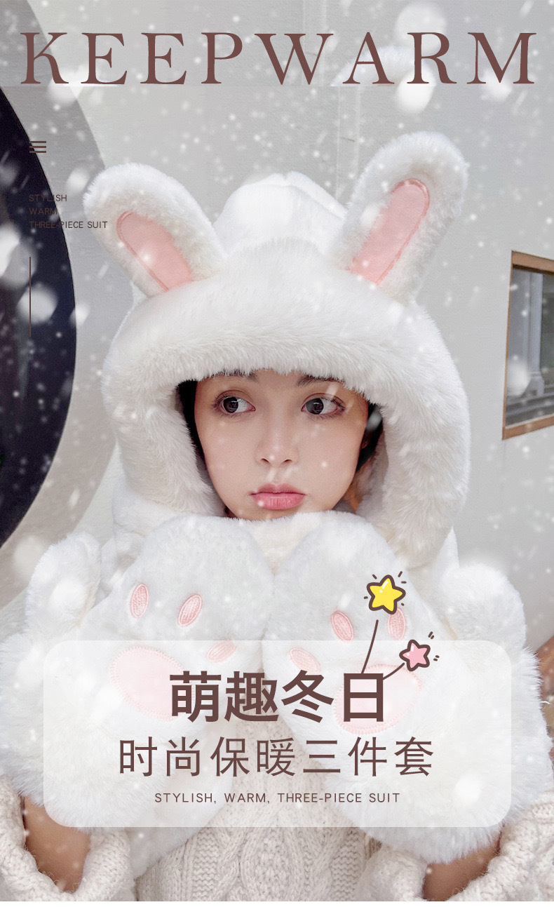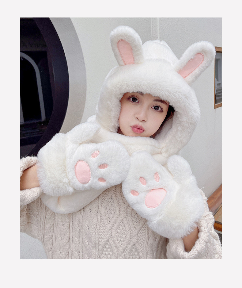 가을과 겨울 새로운 귀여운 봉제 토끼 귀 고양이 발톱 모자 스카프 3 종 세트 여성 따뜻한 방한 귀 보호 사이클링스토어 가기