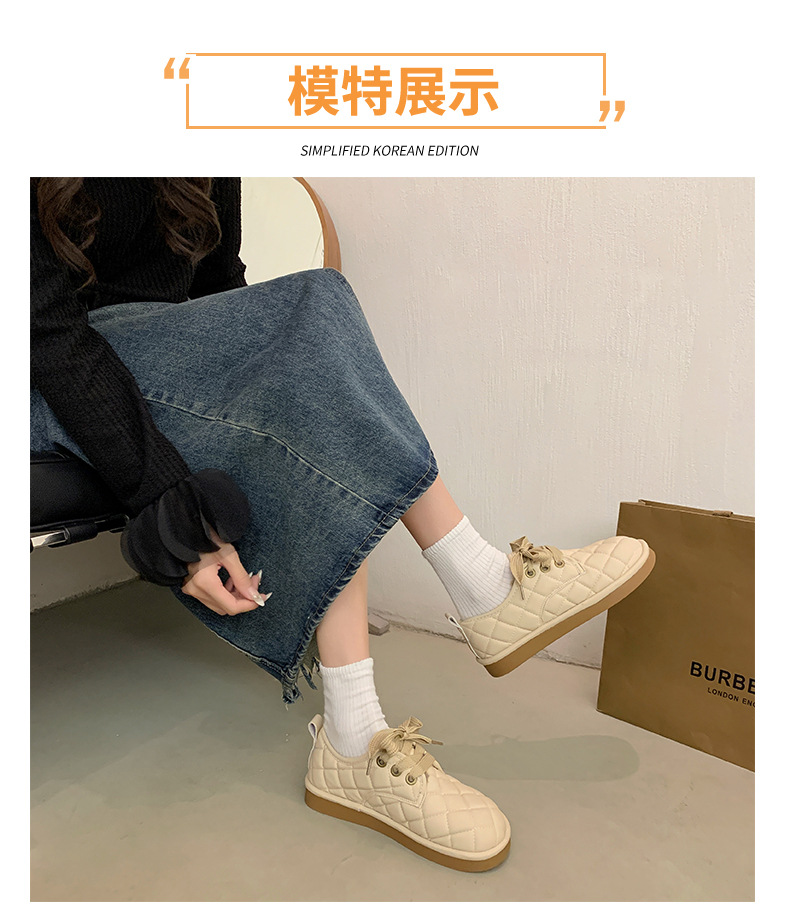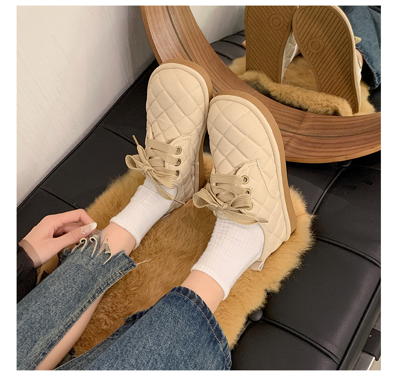 낮은 굽 기모 레이스 업 코튼 슈즈 여성 2024 가을 및 겨울 새로운 한국 스타일 올 매치 미끄럼 방지 따뜻한 스노우 부츠 방수 발목 부츠