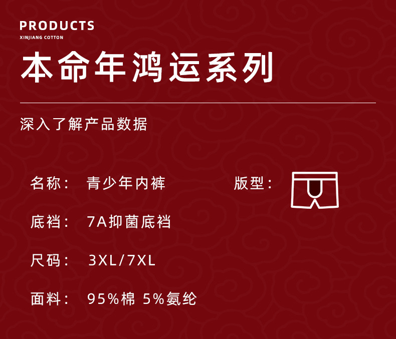 2025 새로운 Benmingnian Red Boys 속옷 코튼 스네이크 보이 큰 어린이 십대 학생 복서 코너스토어 가기