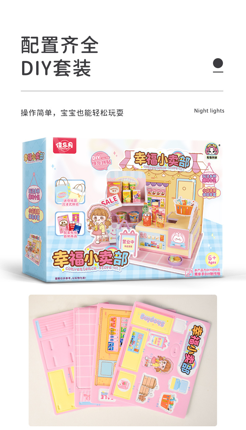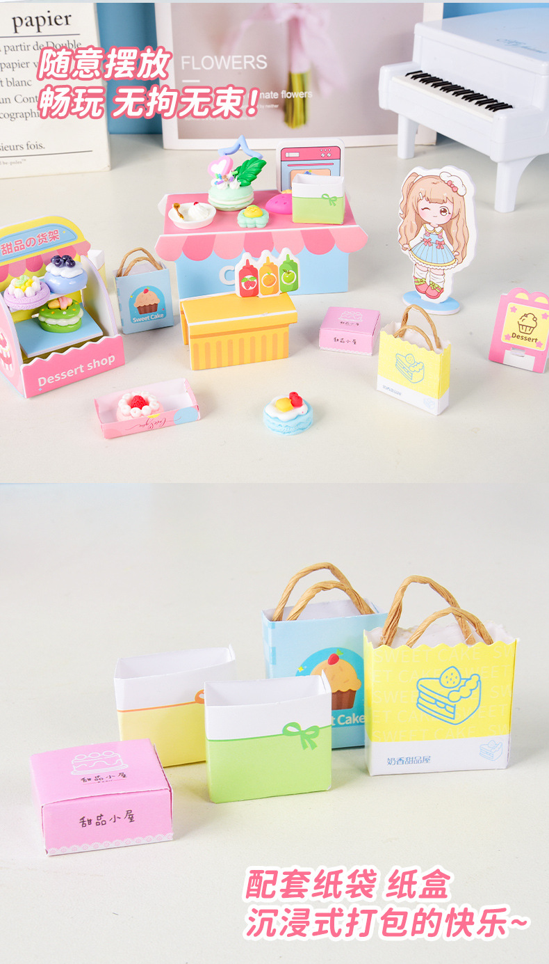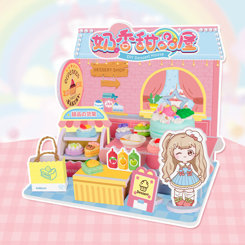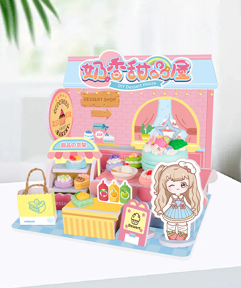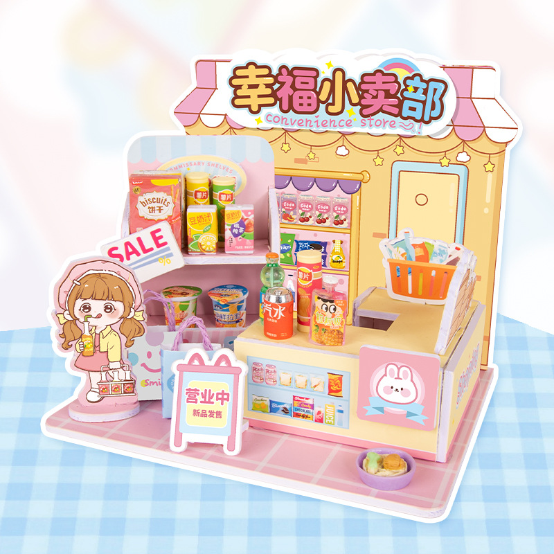 어린이 DIY 수제 음식 장난감 장면 캐빈 미니 미니어처 모델 3D 스테레오 조립 작은 집스토어 가기