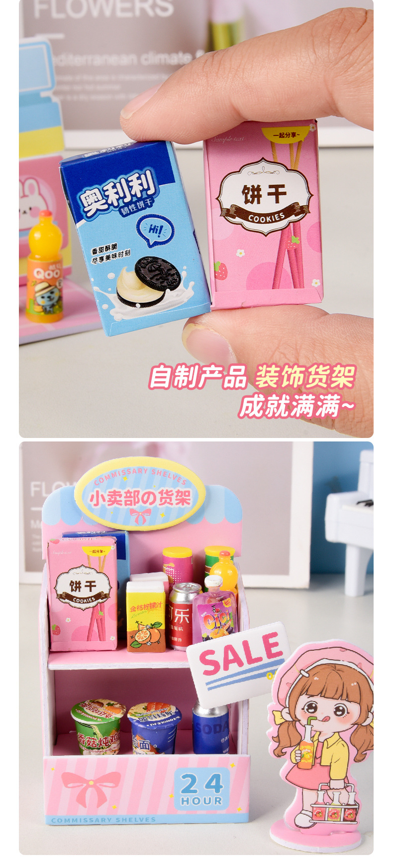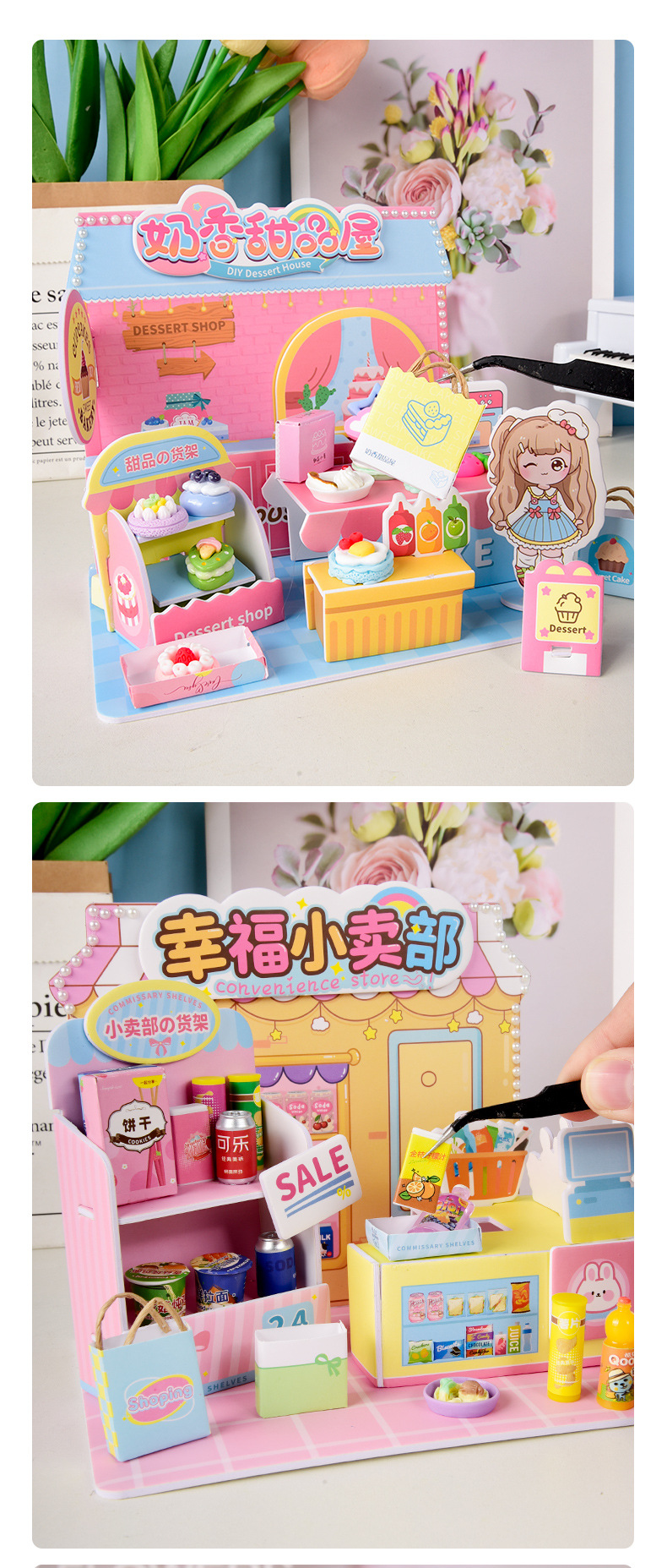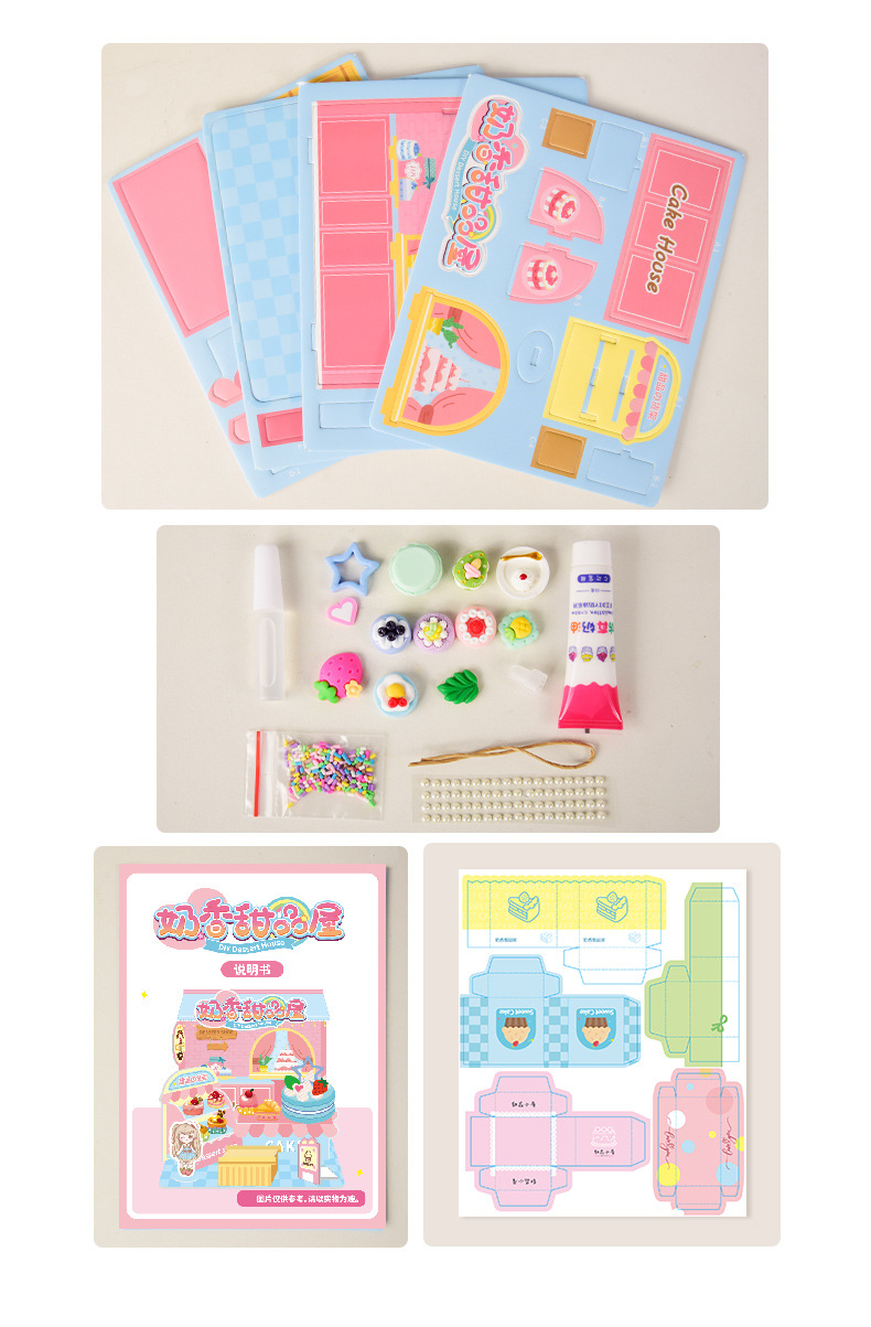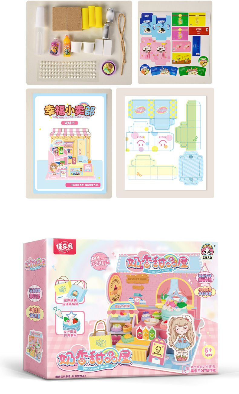 어린이 DIY 수제 음식 장난감 장면 캐빈 미니 미니어처 모델 3D 스테레오 조립 작은 집스토어 가기
