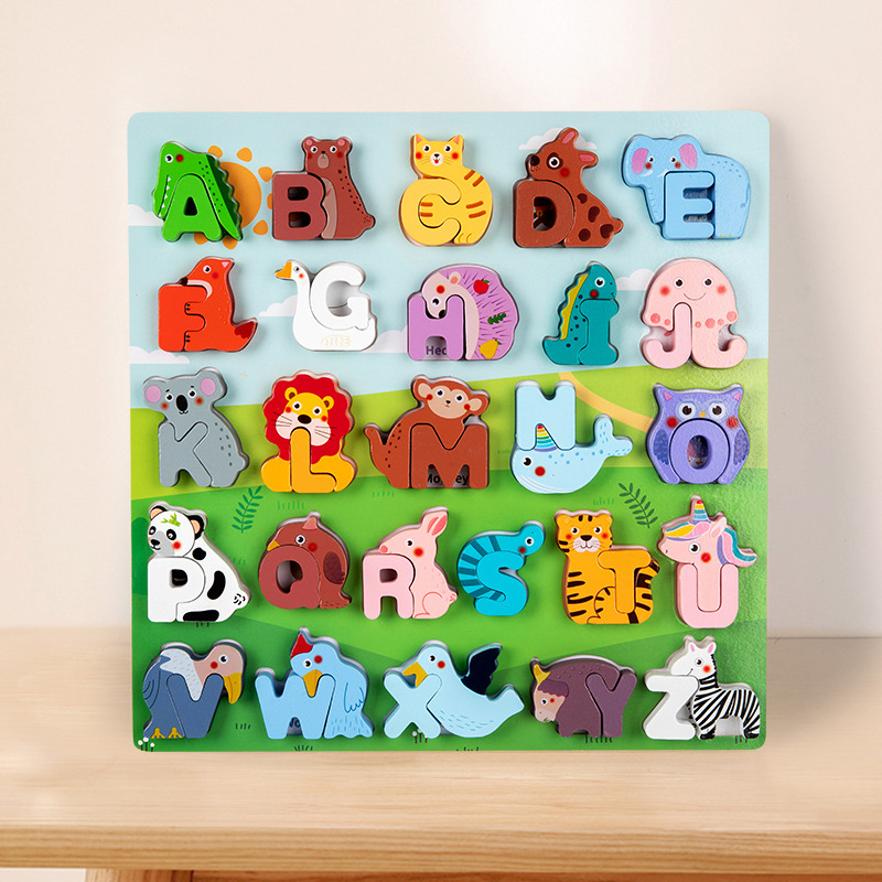 어린이 논리적 사고 퍼즐 장난감 개발 소년과 소녀 퍼즐 빌딩 블록 조기 교육 동물 편지 나무 장난감