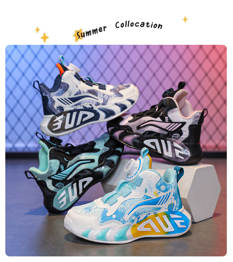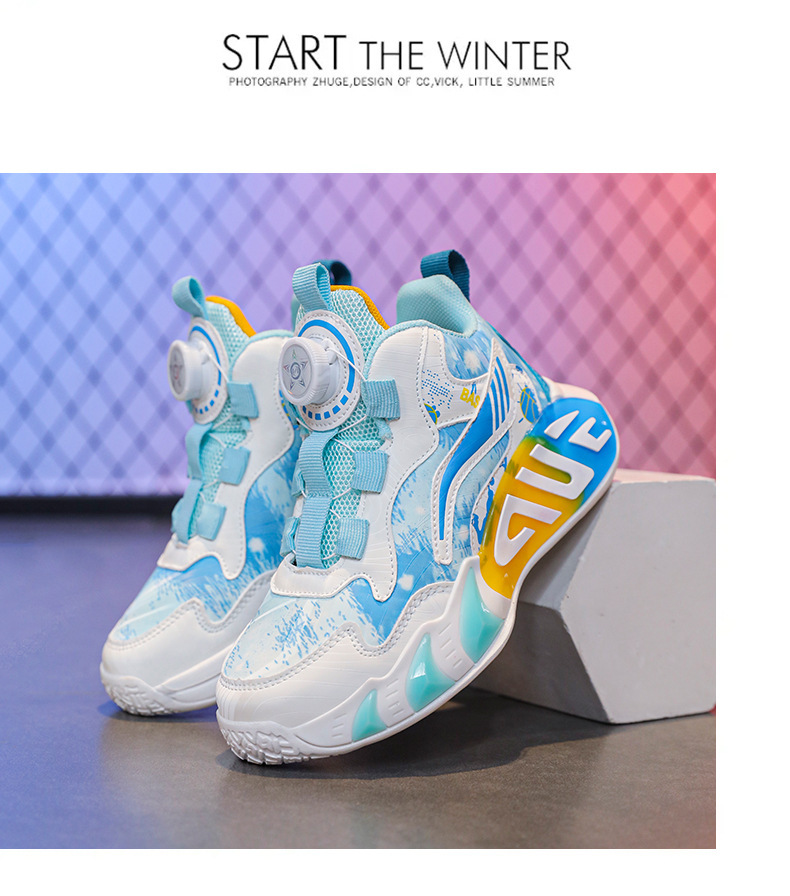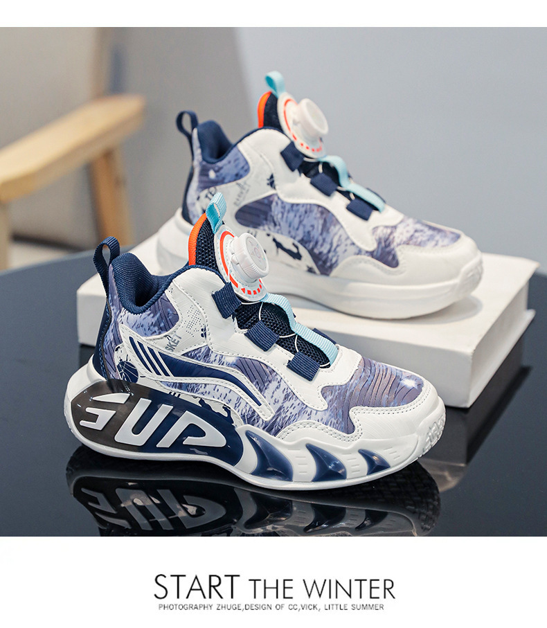 어린이 농구 신발 새 버튼 운동화 더블 넷 가을과 겨울 가죽 가벼운 마찰 운동화스토어 가기