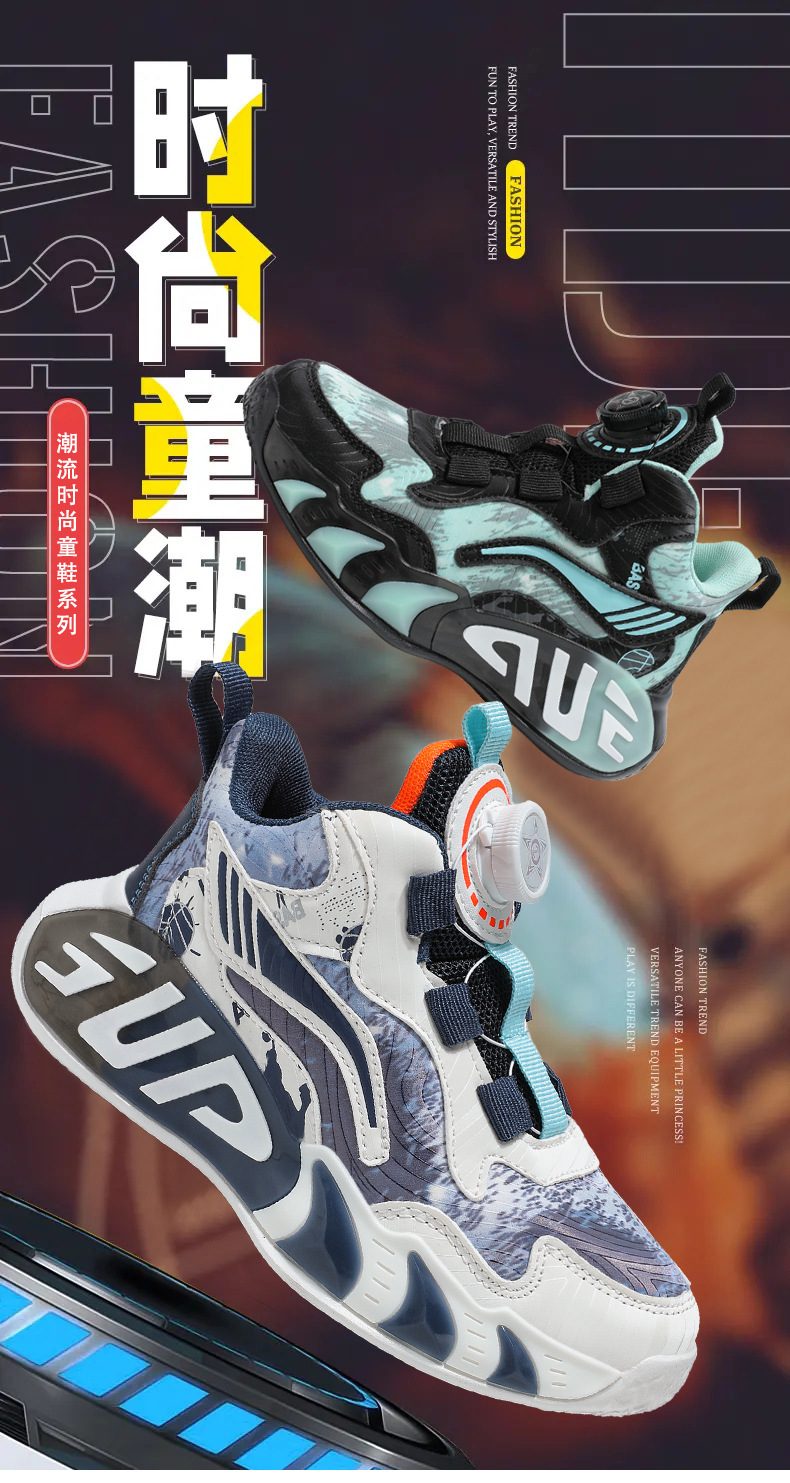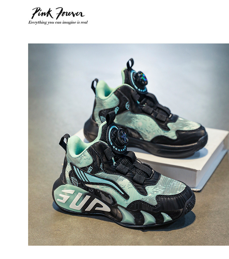 儿童篮球鞋2024新款纽扣运动鞋双网秋冬季皮面轻便摩擦有声音跑鞋