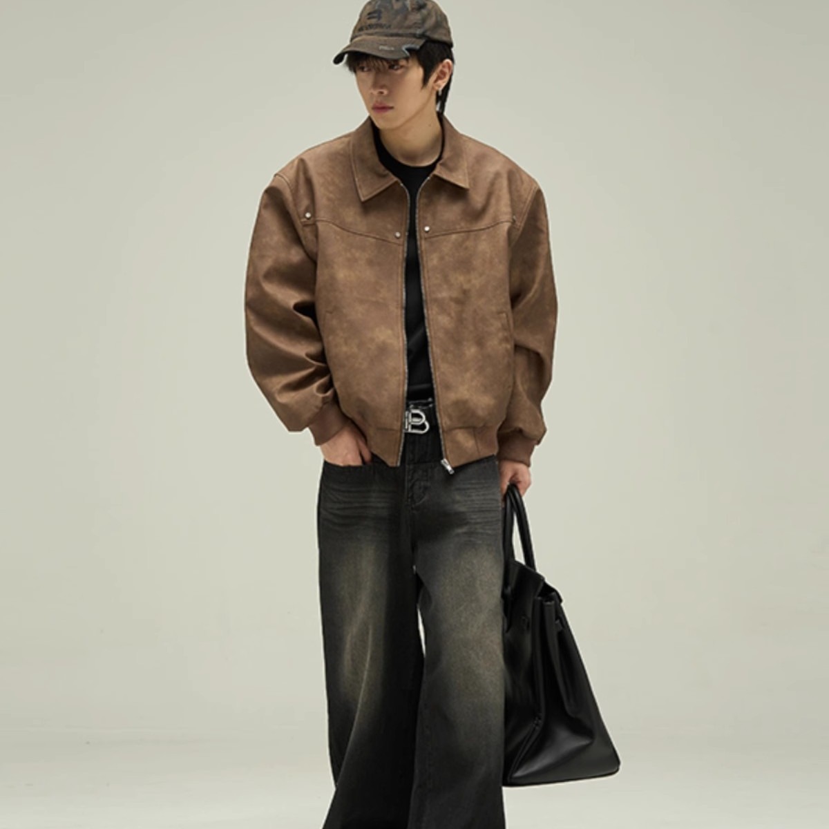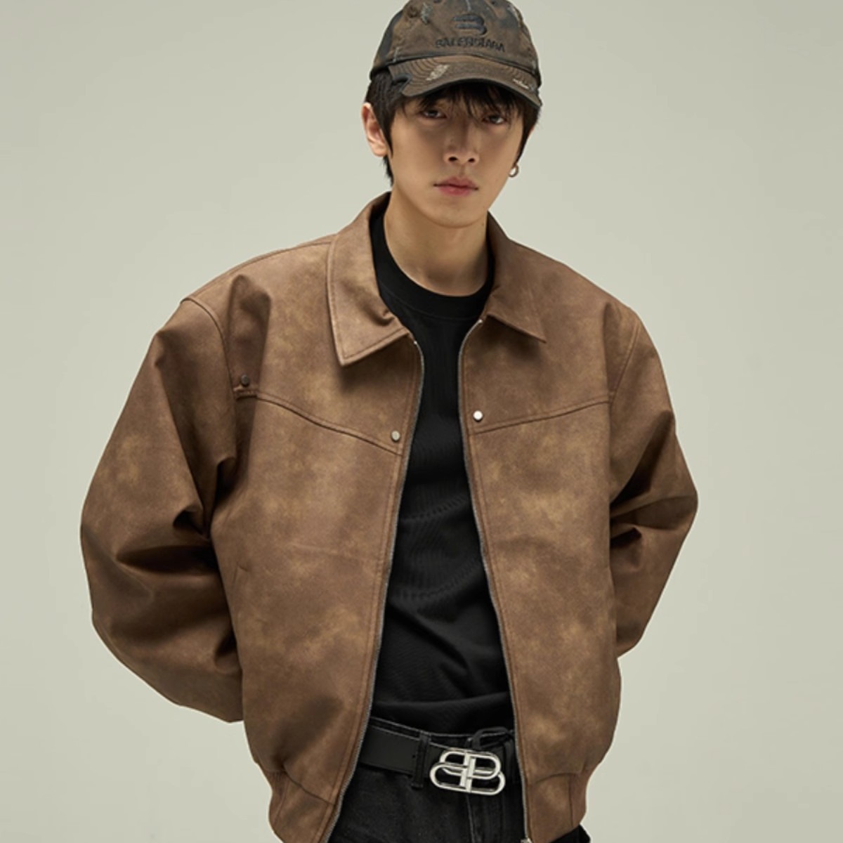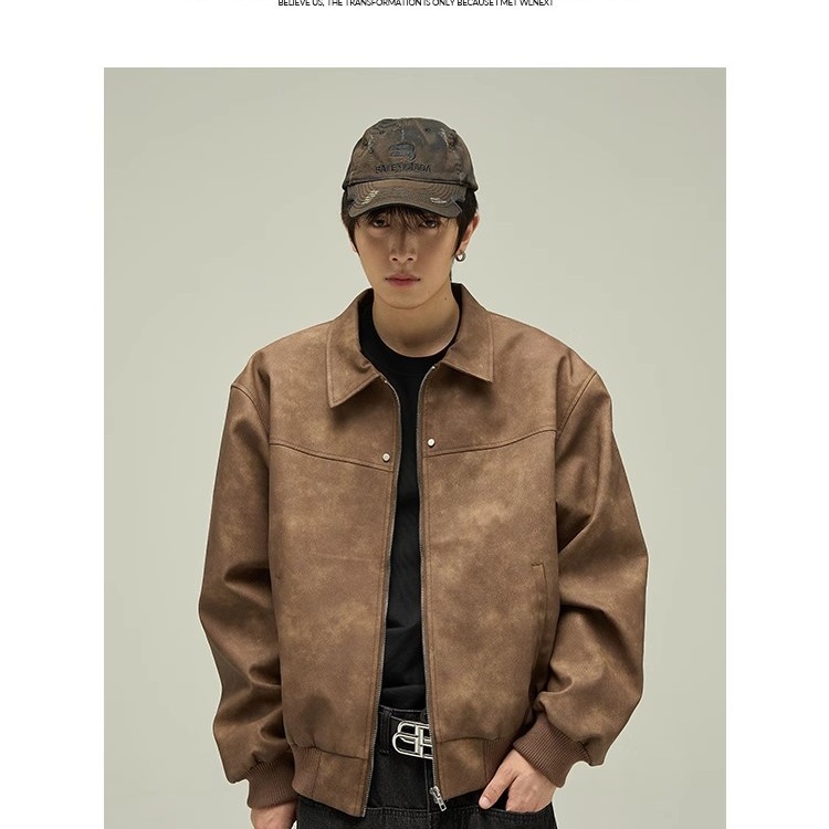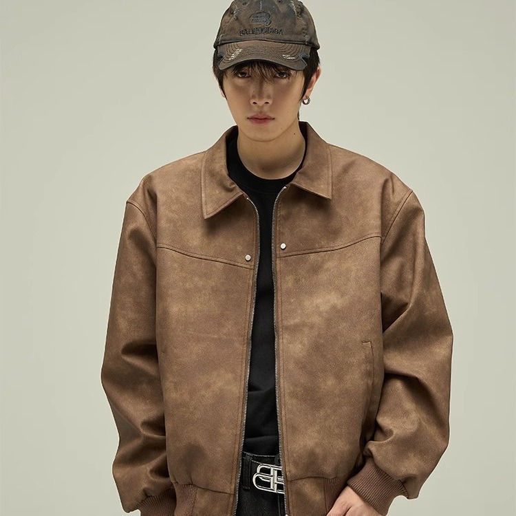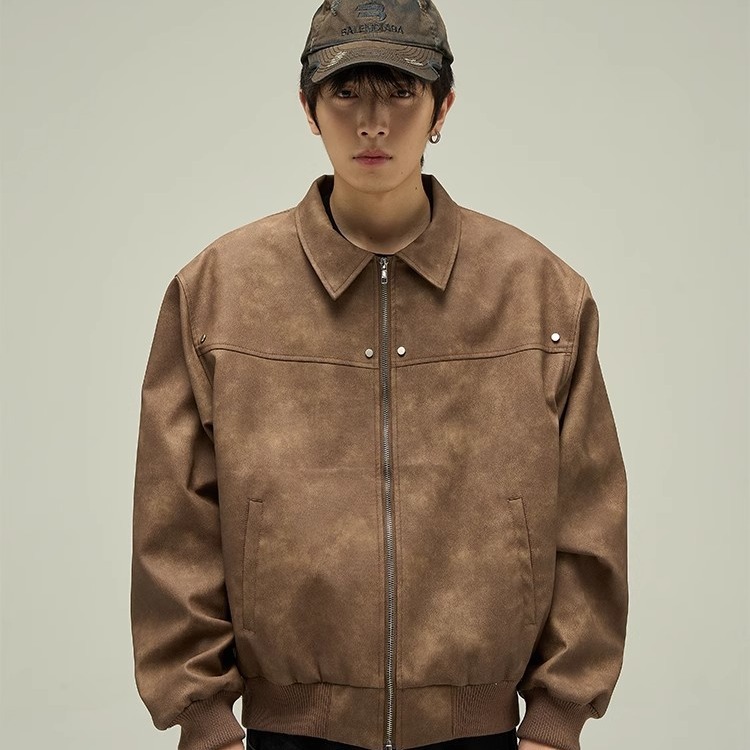 품질 아메리칸 스타일 레트로 다크 브라운 옷깃 가죽 자켓 남성 자켓 Maillard Suede 커플 재킷 탑스토어 가기