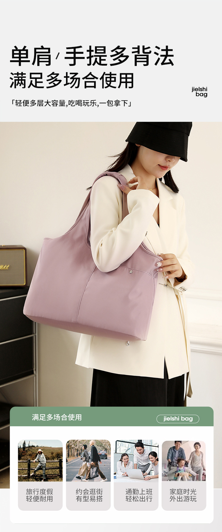 여성용 가방 옥스포드 천 큰 가방 새로운 경량 방수 나일론 미라 가방 스퀘어 댄스 캐주얼 여행 어깨 핸드백스토어 가기