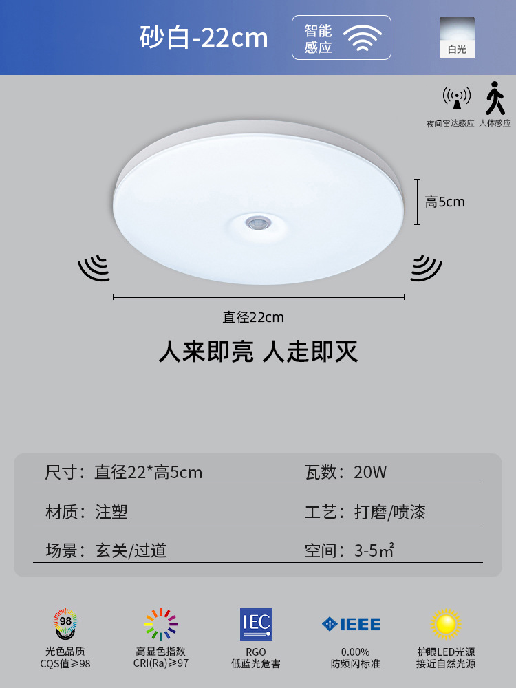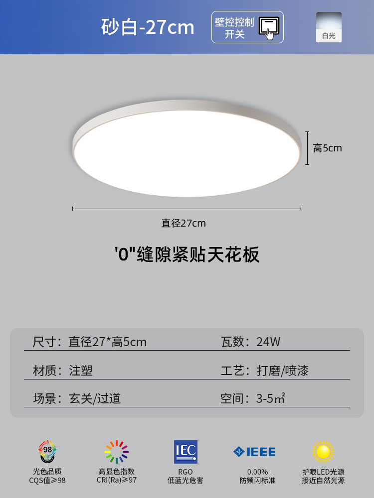 마스터 침실 천장등, 3중 방수등, 심플한 주방 및 욕실 복도, 현관, 계단 입구, 욕실, 화장실 LED