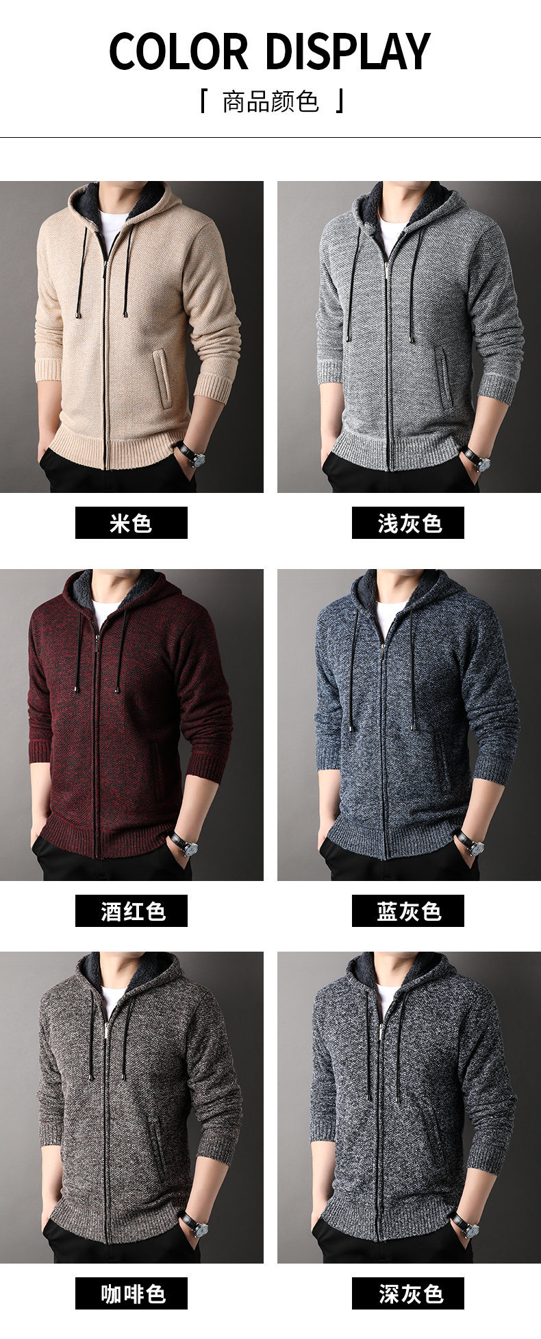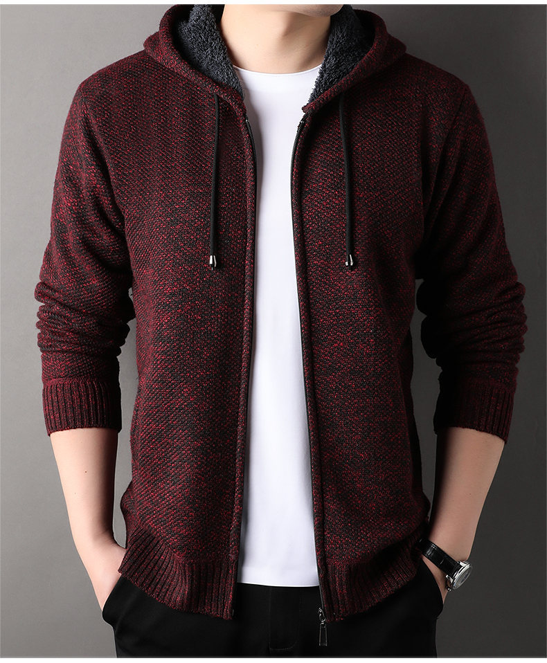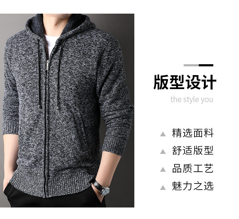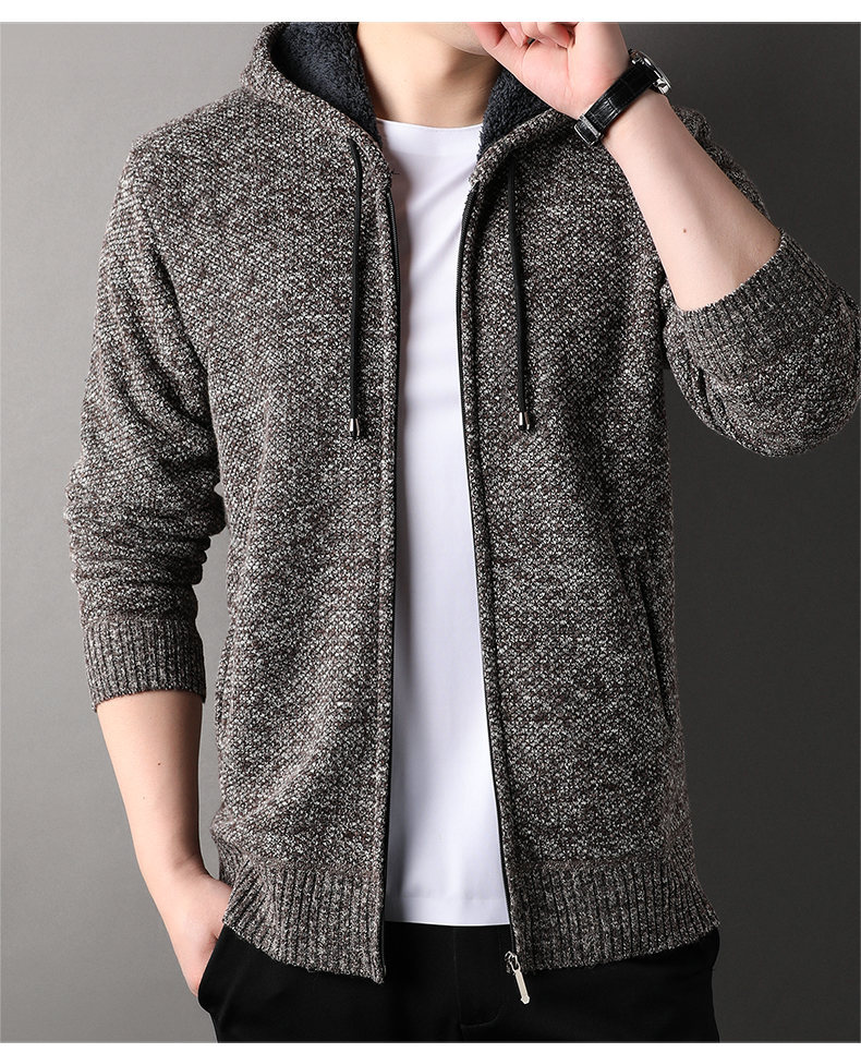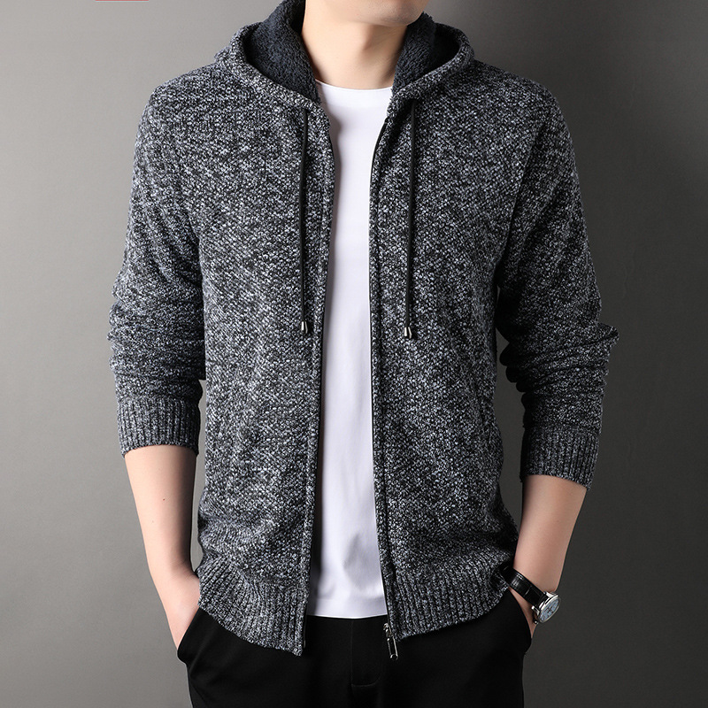 남자 카디건 스웨터 2024 가을과 겨울 새로운 기모 두꺼운 따뜻한 후드 재킷 코트 캐주얼 스웨터 조수스토어 가기