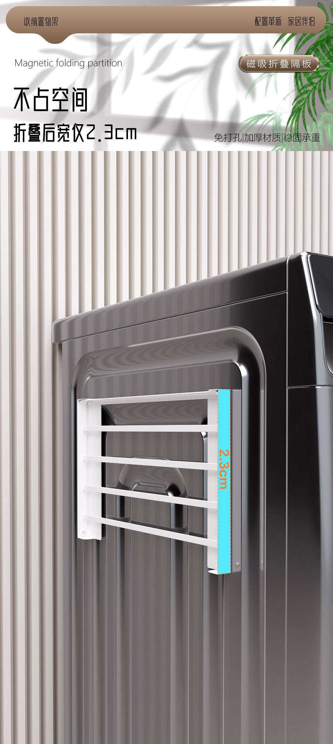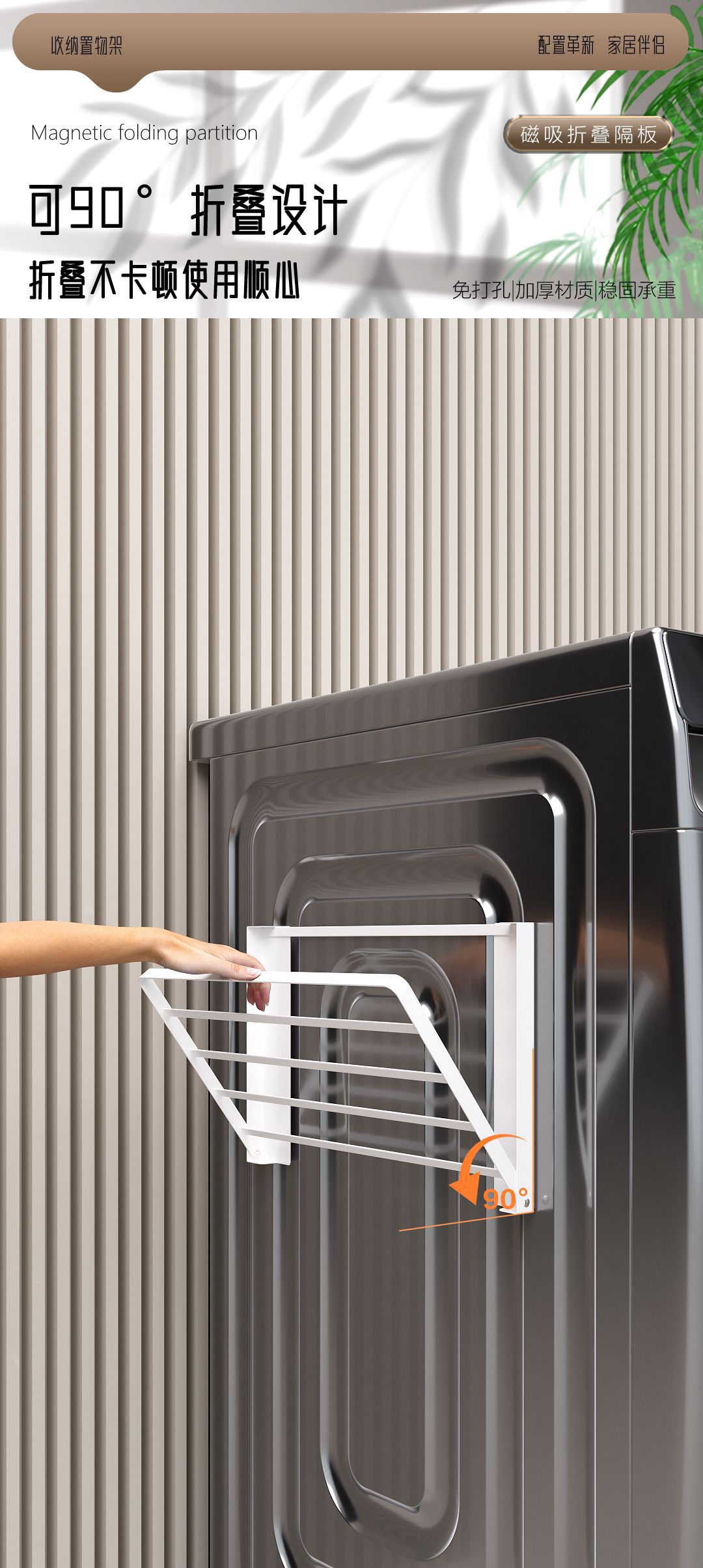 마그네틱 폴딩 선반 세탁기 사이드 랙 의류 선반 펀치 프리 냉장고 사이드 랙 걸이 스토리지 랙