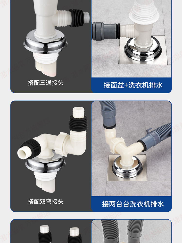 세탁기 하수구 배수관 바닥 배수구 특수 커넥터 3방향 2-in-1 냄새 방지 및 오버플로 방지스토어 가기