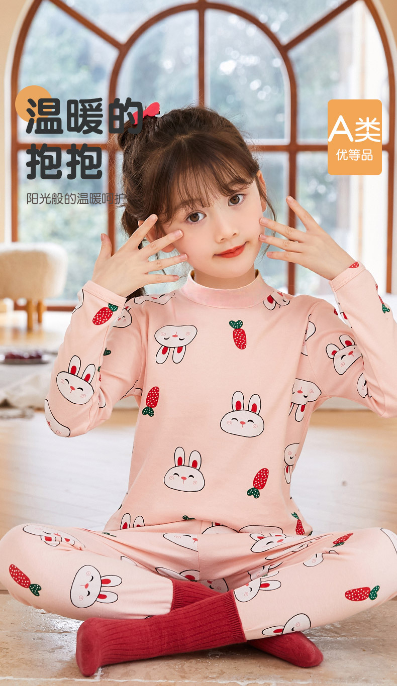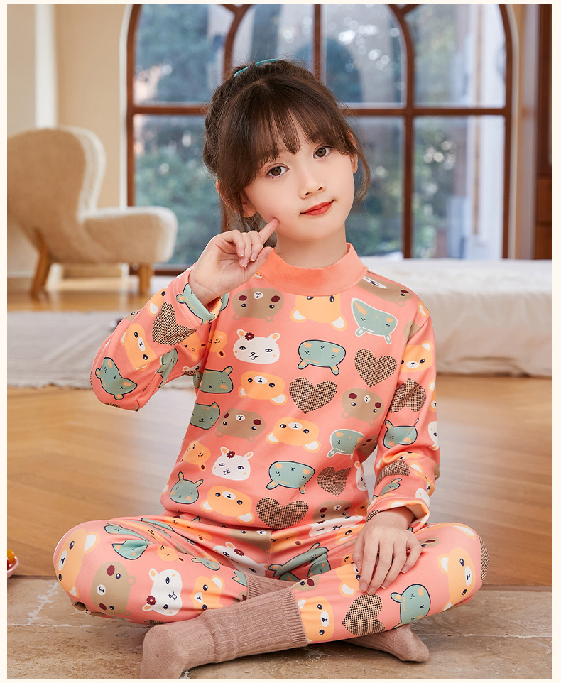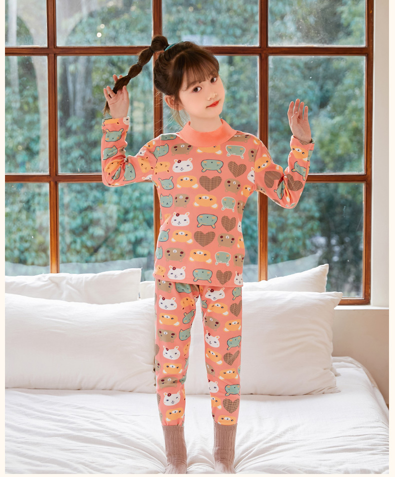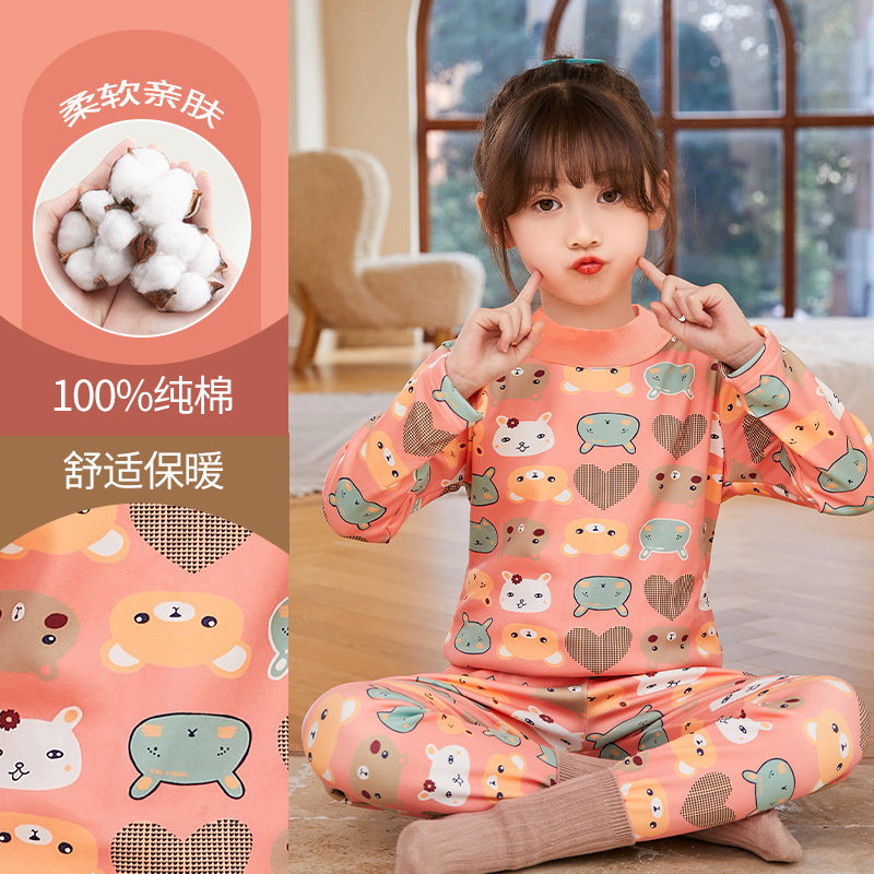 반 높이 칼라 소녀의 가을 옷과 바지 어린이 열 속옷 세트 면 카테고리 중대형 어린이 면 만화 내복스토어 가기
