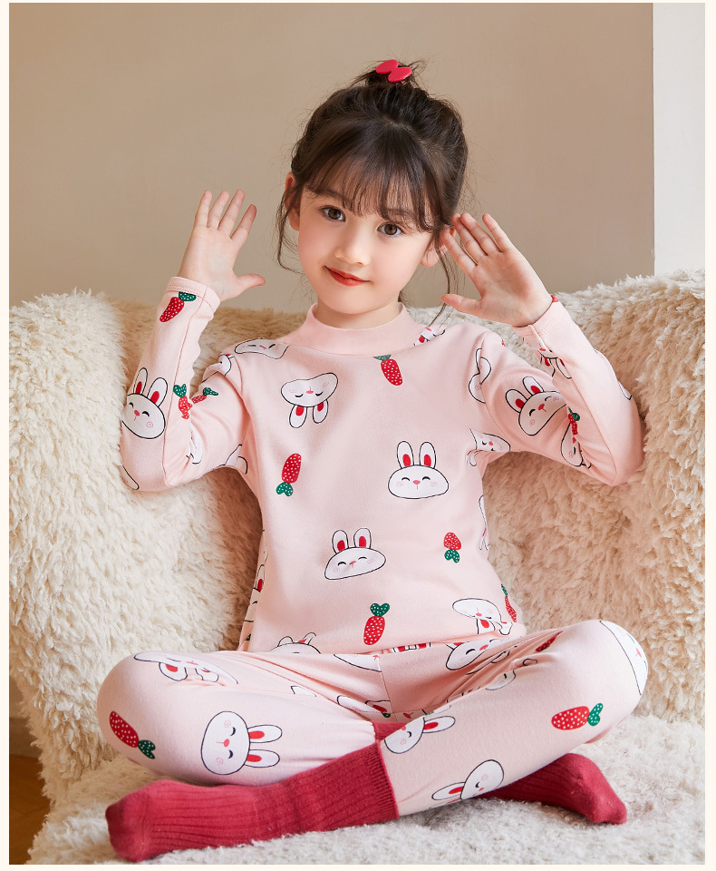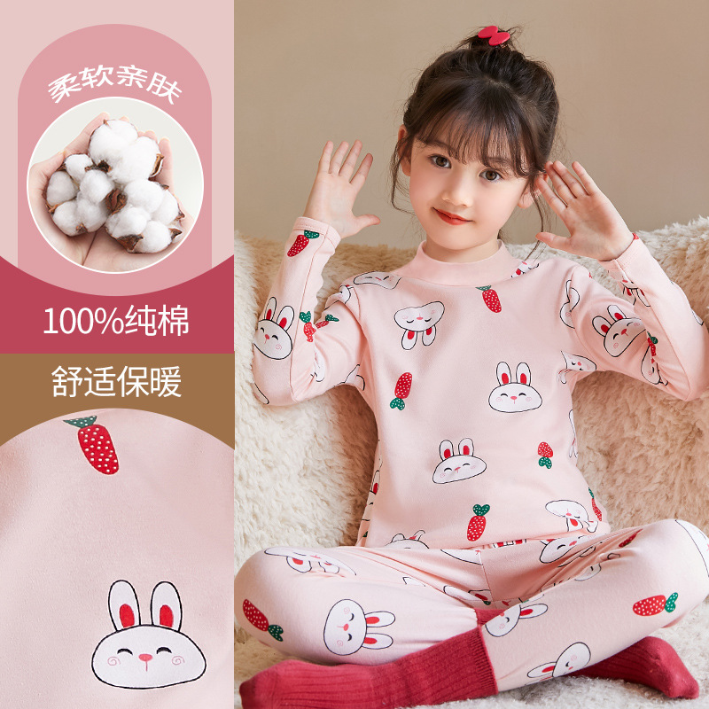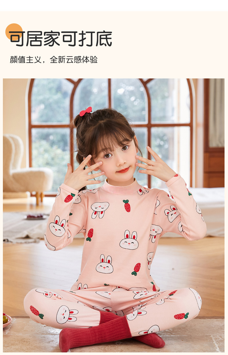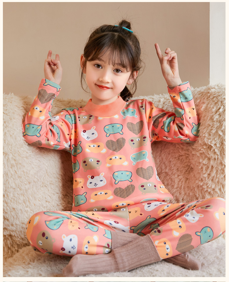 반 높이 칼라 소녀의 가을 옷과 바지 어린이 열 속옷 세트 면 카테고리 중대형 어린이 면 만화 내복스토어 가기