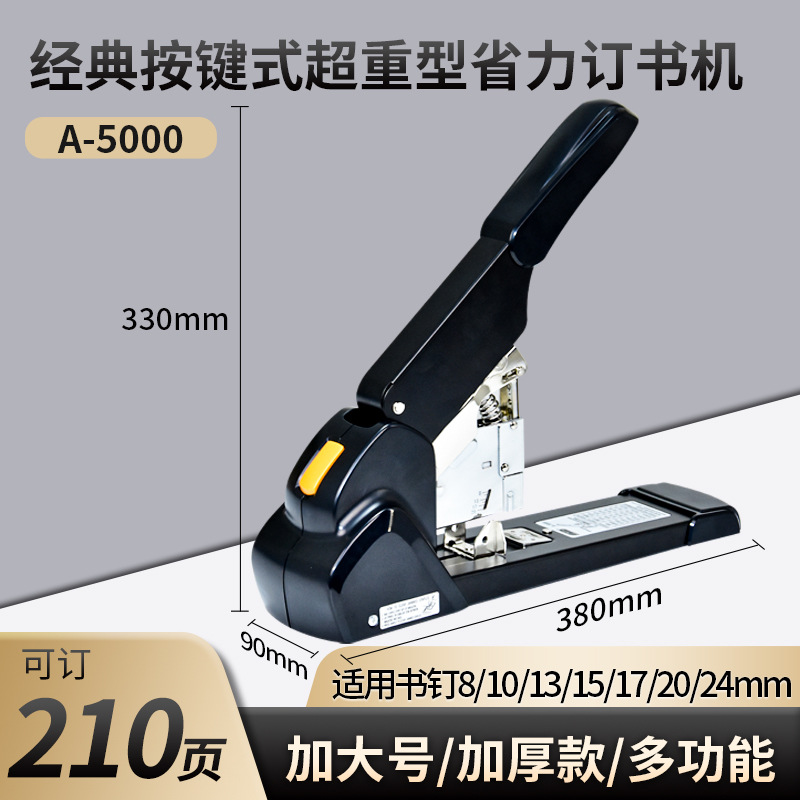 • [플랫 스테이플러 수동 용지 210매] 클래식 버튼형 초강력 및 노동 절약형 스테이플러 A-5000
