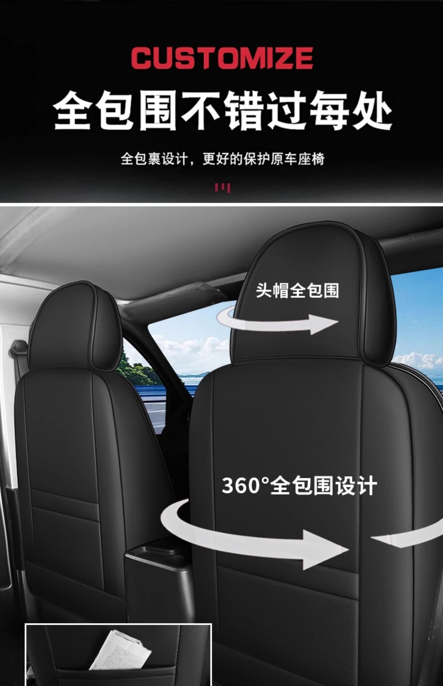• 올블랙 앞좌석 2개 + 머리받침대 2개 + 요추받침대 2개