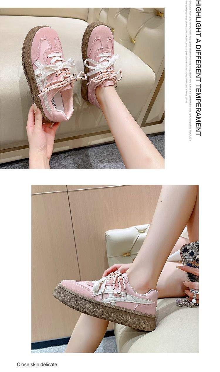틈새 노란색 한국 스타일 신발 여성 2024 새 두꺼운 단독 증가 스포츠 캐주얼 신발 도파민 대학 스타일 운동화스토어 가기