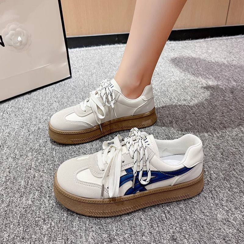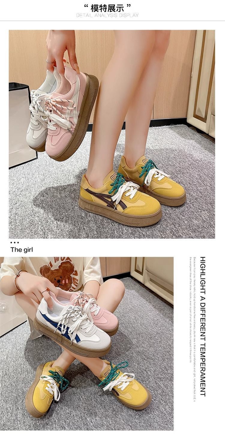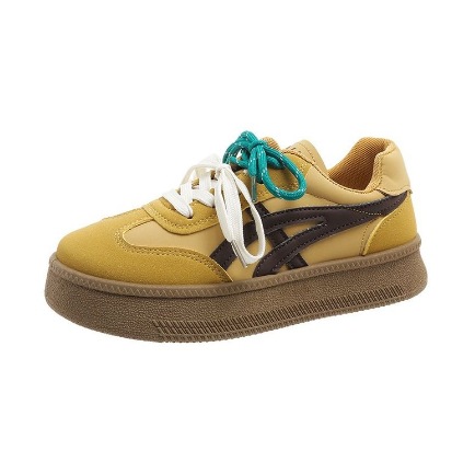 틈새 노란색 한국 스타일 신발 여성 2024 새 두꺼운 단독 증가 스포츠 캐주얼 신발 도파민 대학 스타일 운동화