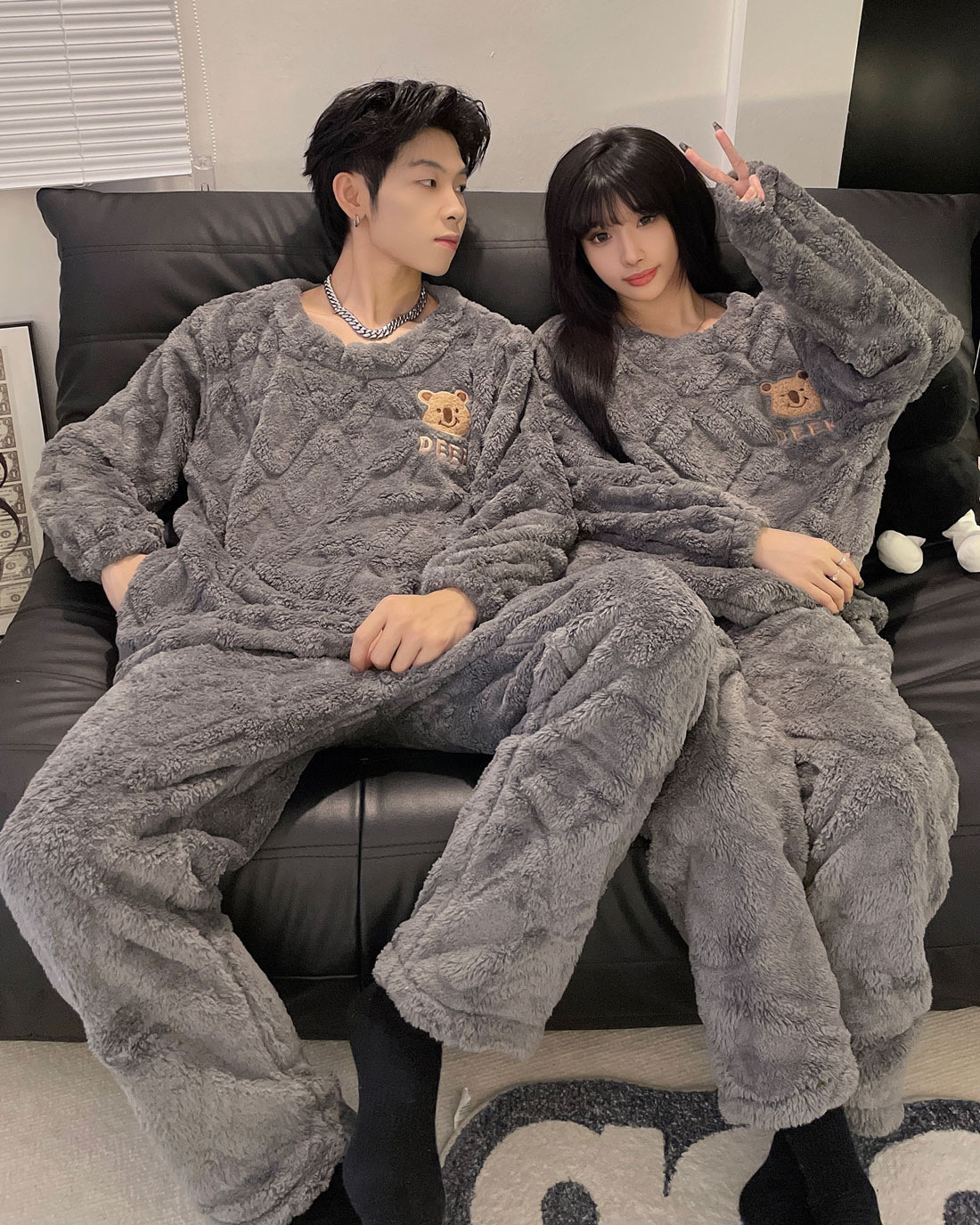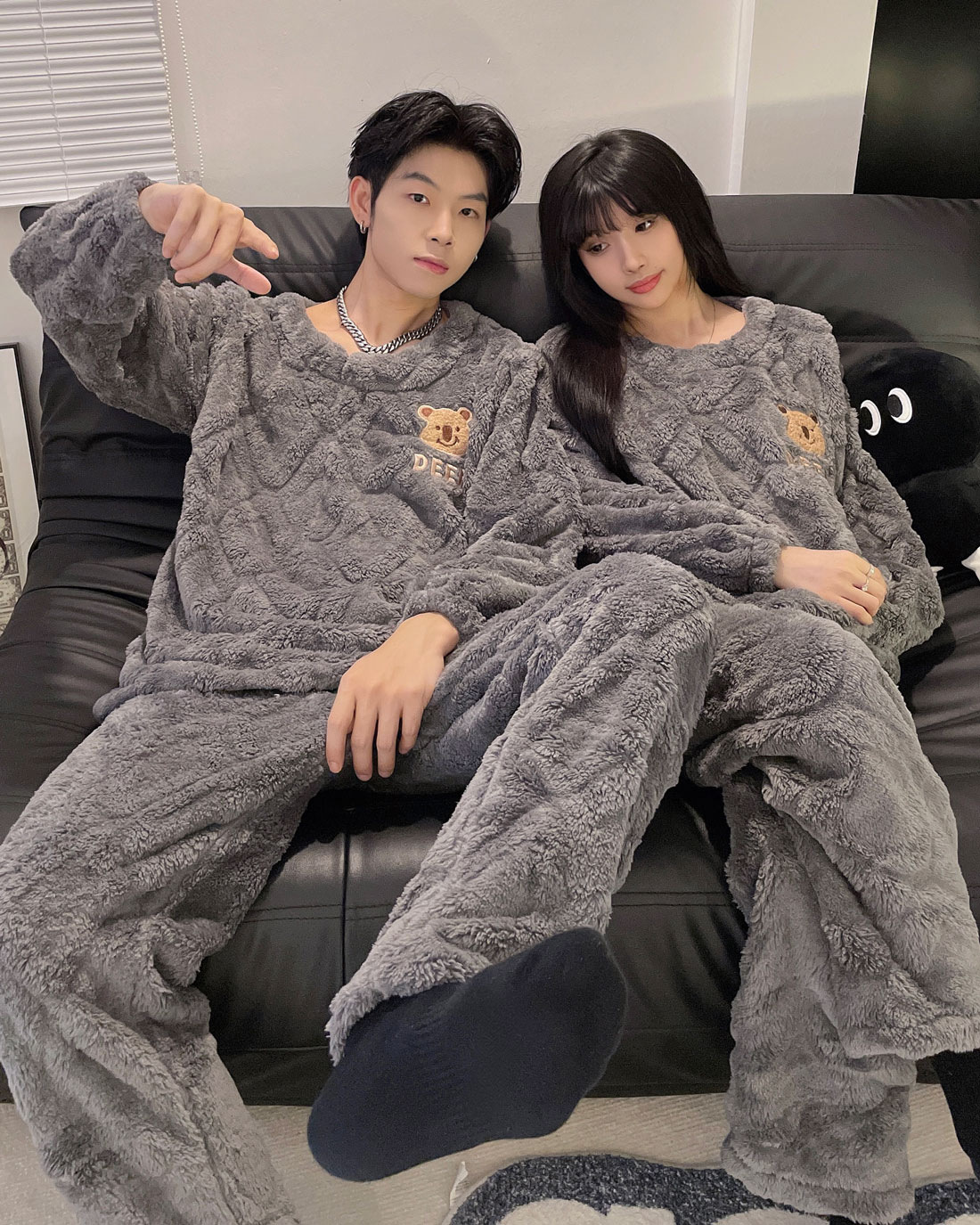 남성과 여성을위한 산호 양털 잠옷 겨울 기모 두꺼운 귀여운 커플 가을과 겨울 새로운 플란넬 홈 옷
