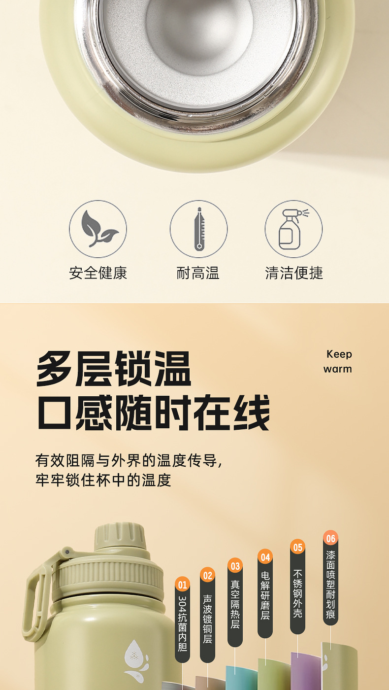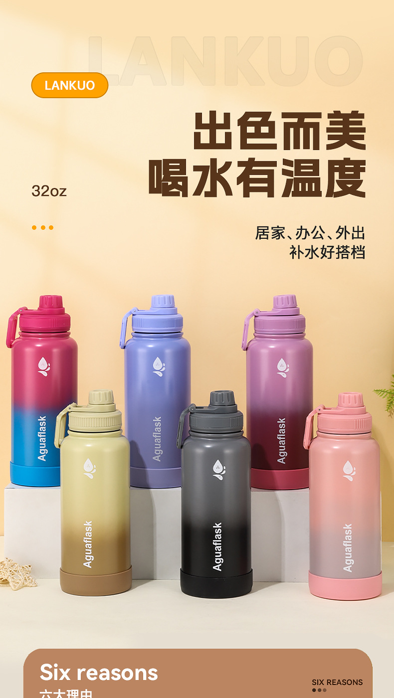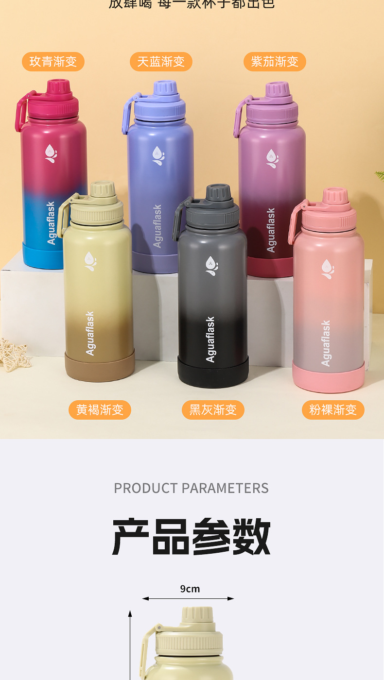 국경 간 재고 대용량 그라디언트 공간 냄비 304 스테인레스 스틸 보온병 컵 높은 색상 가치 야외 스포츠 주전자