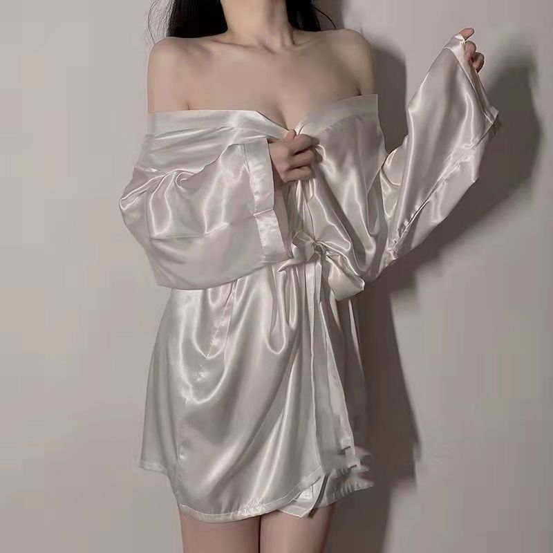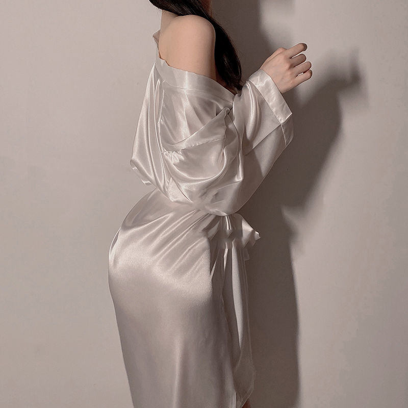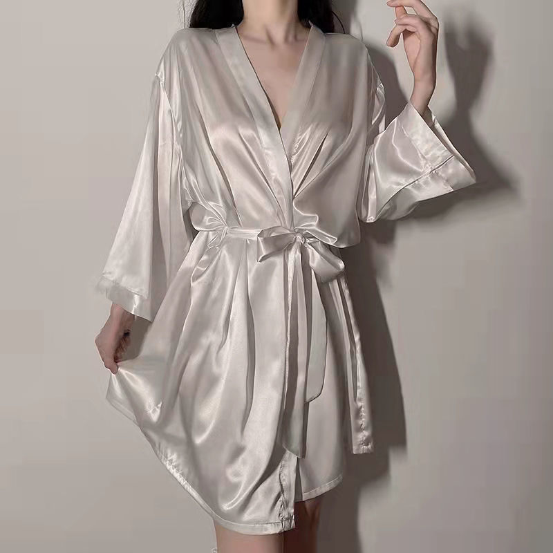 블랙 심플한 순수한 매력 스타일 폴리에스터 잠옷 여성용 봄 가을 얇은 브이넥 홈웨어스토어 가기