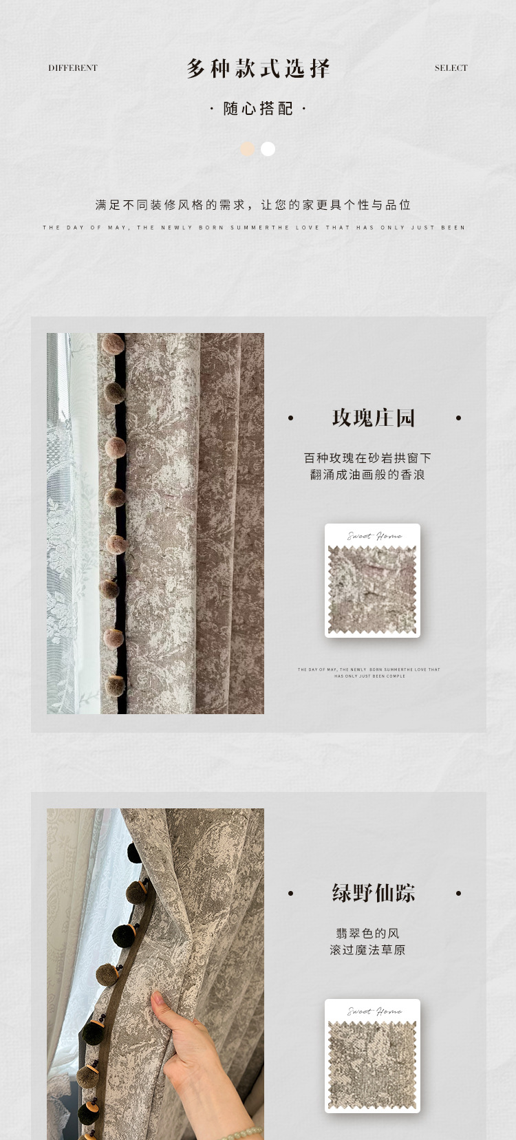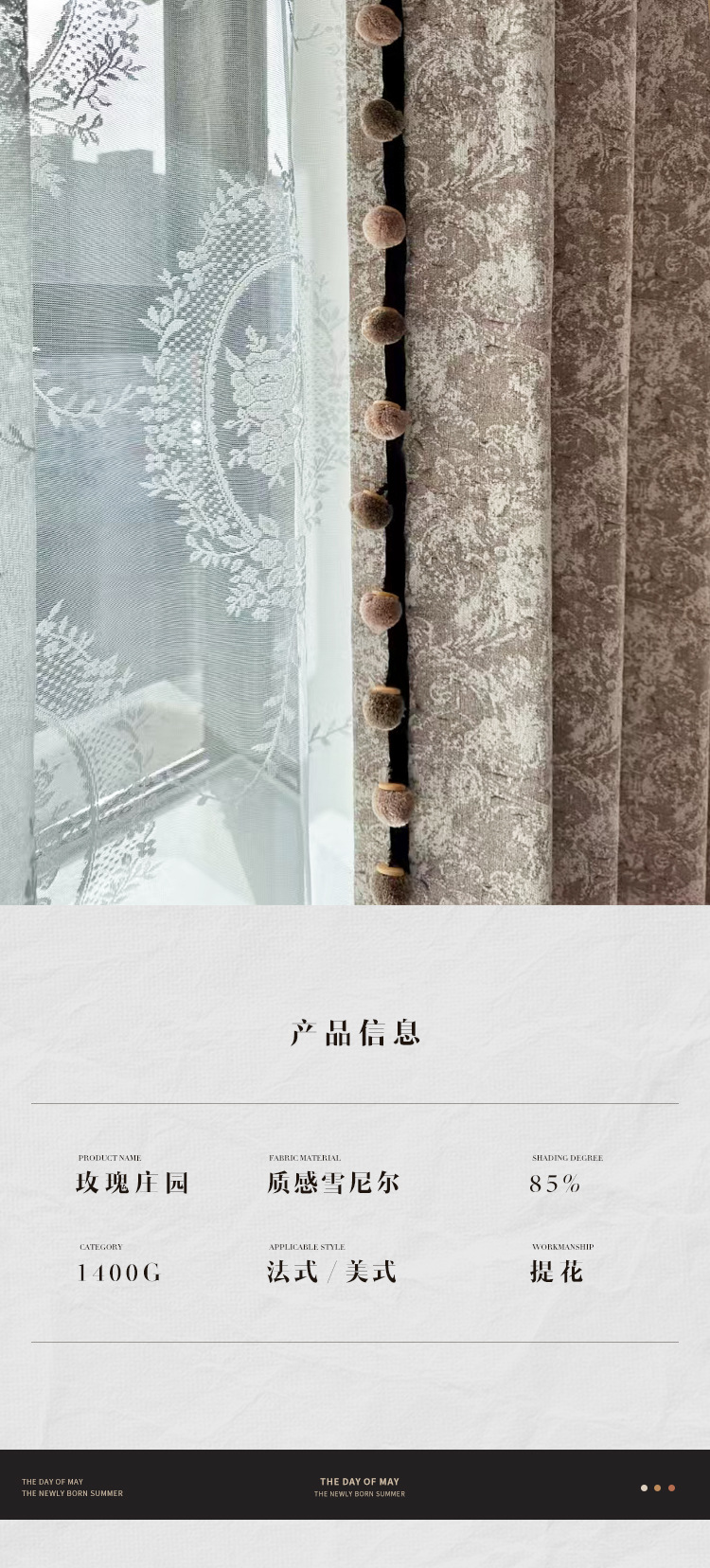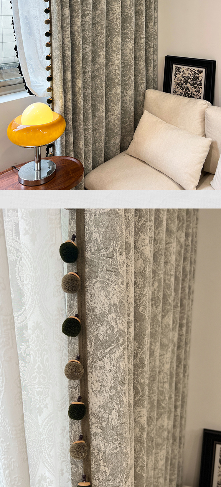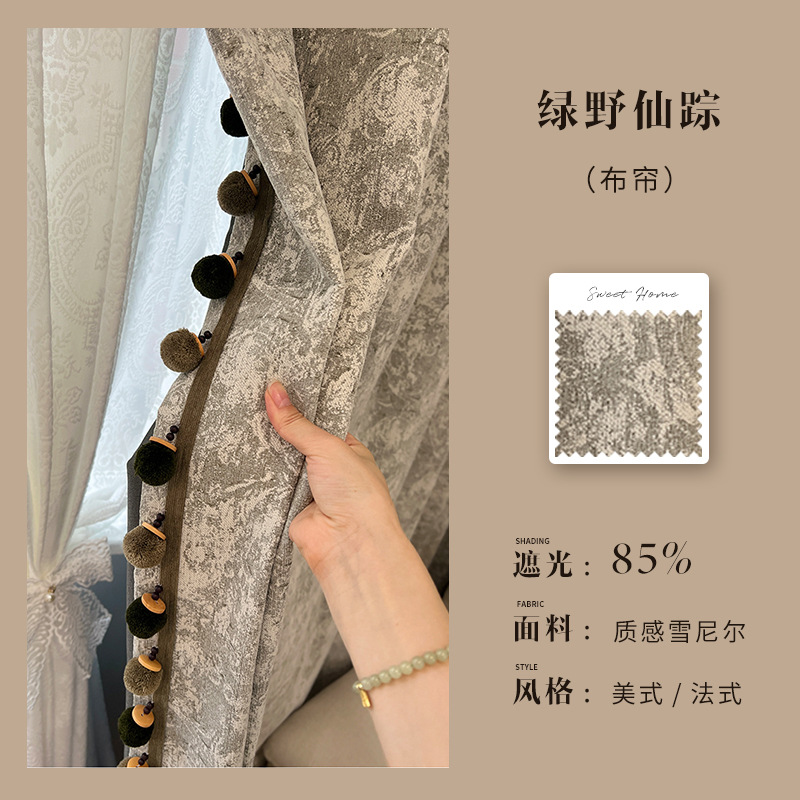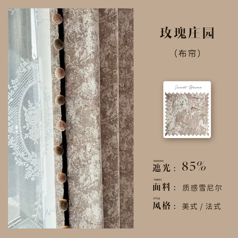 새로운 미국 레트로 로즈 매너 레드 다크 브라운 체닐 커튼 거실 침실 하이 엔드 자카드 정전 커튼스토어 가기