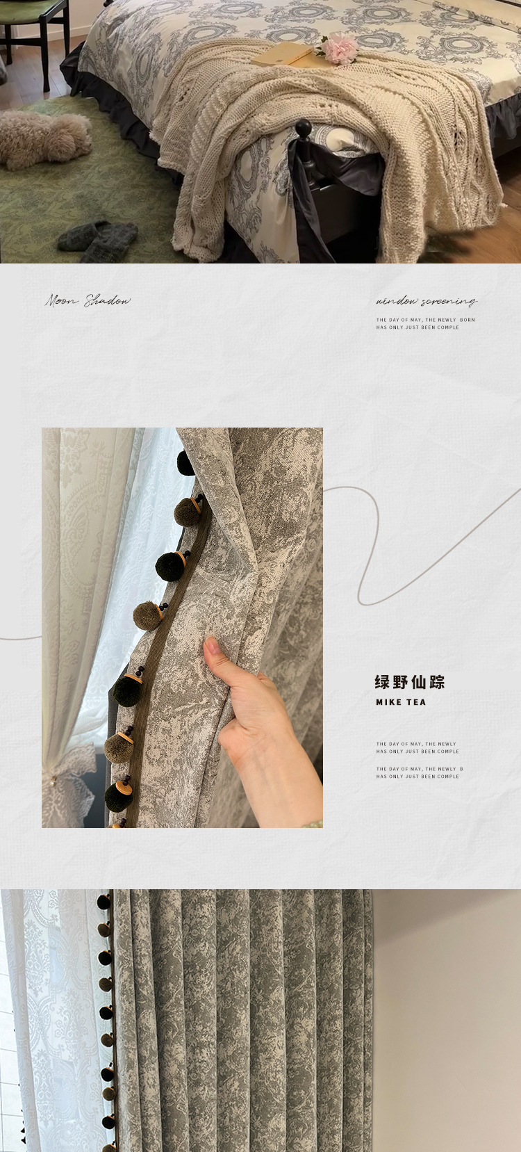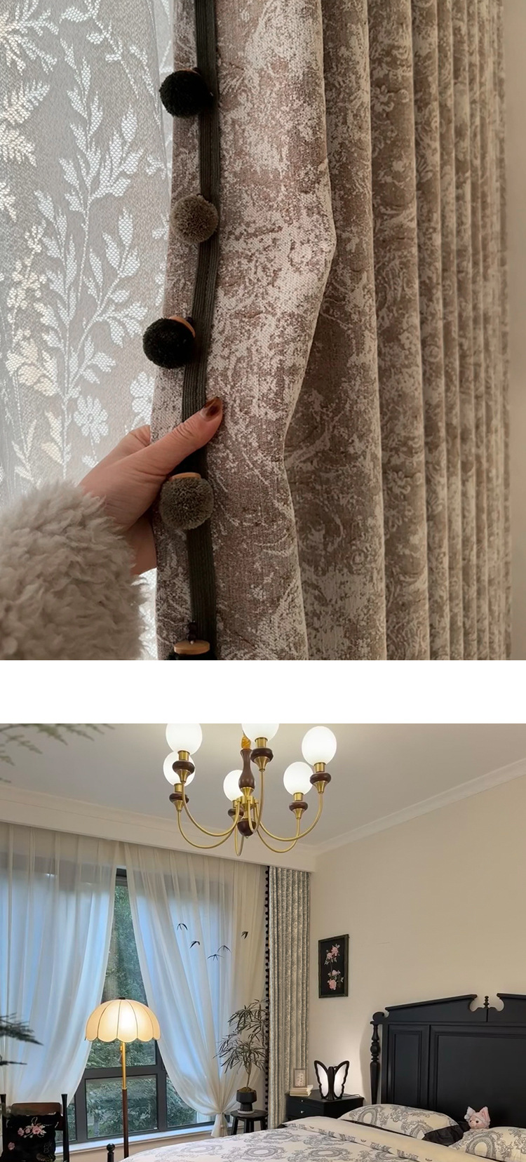 새로운 미국 레트로 로즈 매너 레드 다크 브라운 체닐 커튼 거실 침실 하이 엔드 자카드 정전 커튼