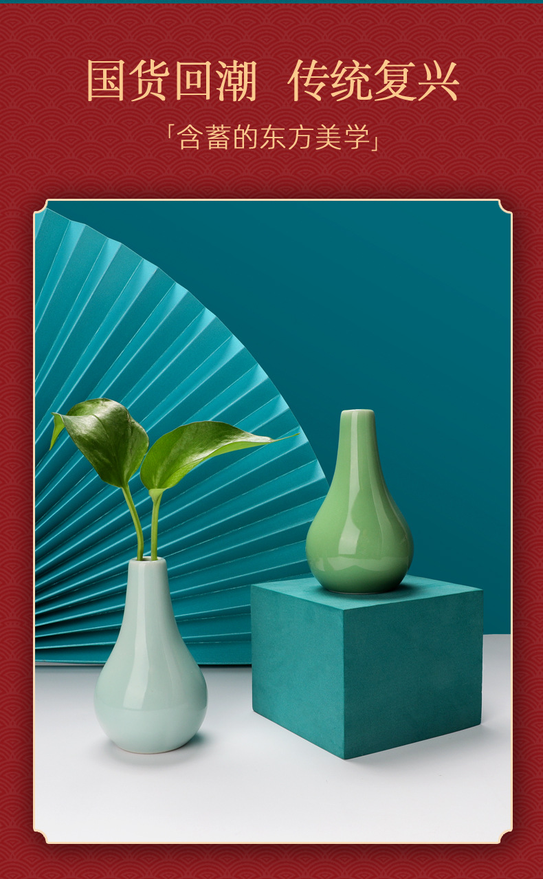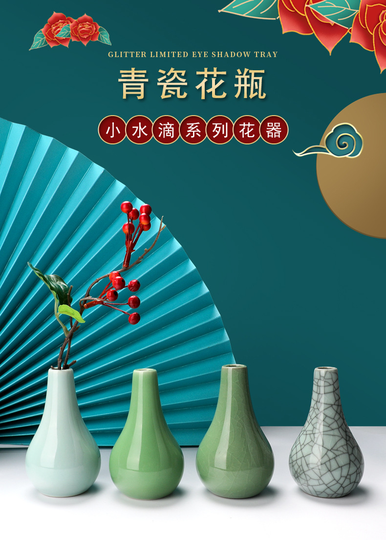새로운 중국 창조적 인 청자 꽃 꽃병 간단한 미니 물방울 수경 Ware 장식품 꽃병 홈