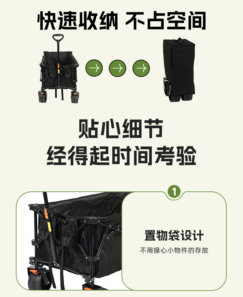 Shanqu 야외 블랙 캠핑 접이식 트롤리 피크닉 캠프 핸드 푸시 로드 트롤리 롱 와이드 휠 대형 트롤리